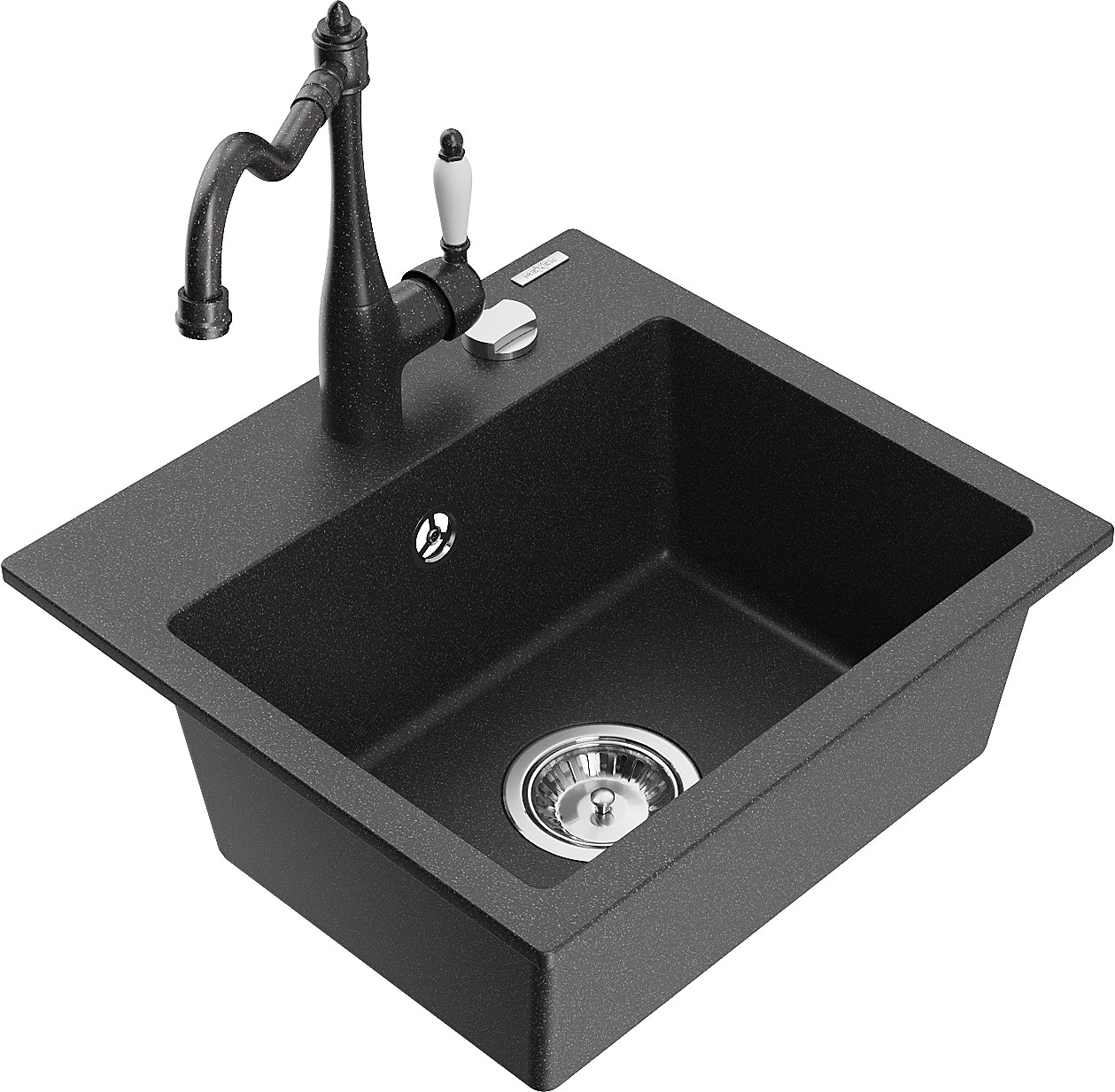 Mexen Milo granitový drez s 1-komorou a kuchynskou batériou Carla, čierny kropený - 6505-76-670700-76