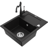 Mexen Enzo granitový drez 1-komorový s odkvapkávačom a kuchynskou batériou Carla, sivý - 6506-71-670700-71