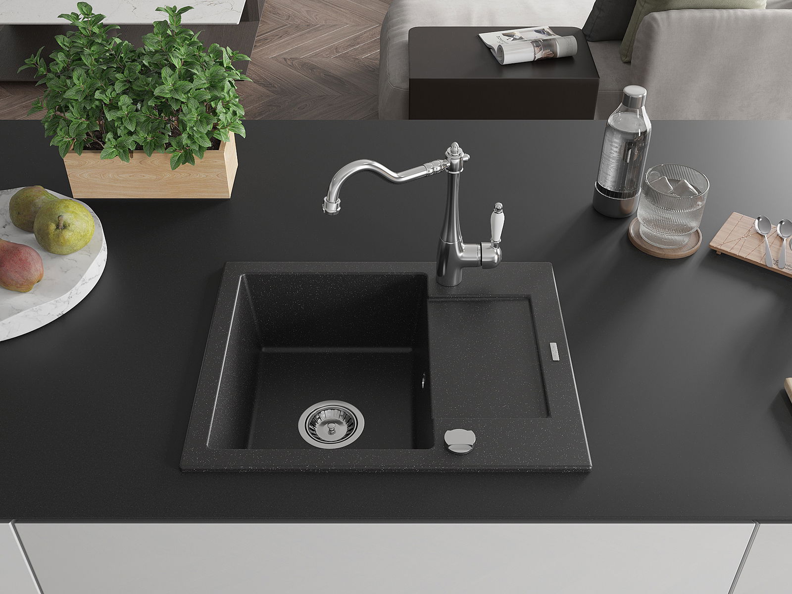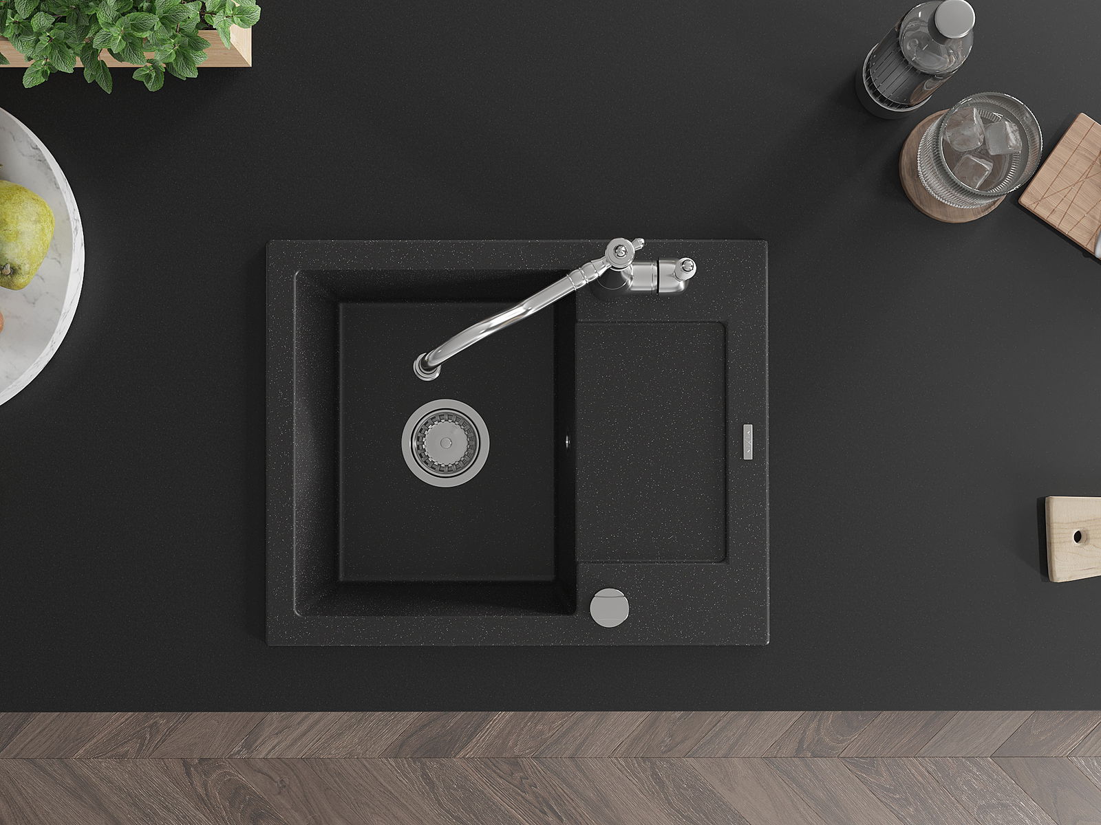 Povrch umývadla je odolný voči škvrnám a sfarbeniu, vďaka čomu sa ľahko čistí a zachováva si svoju farbu po dlhú dobu. Estetický a prakticky dopĺňajúci každú kuchyňu.