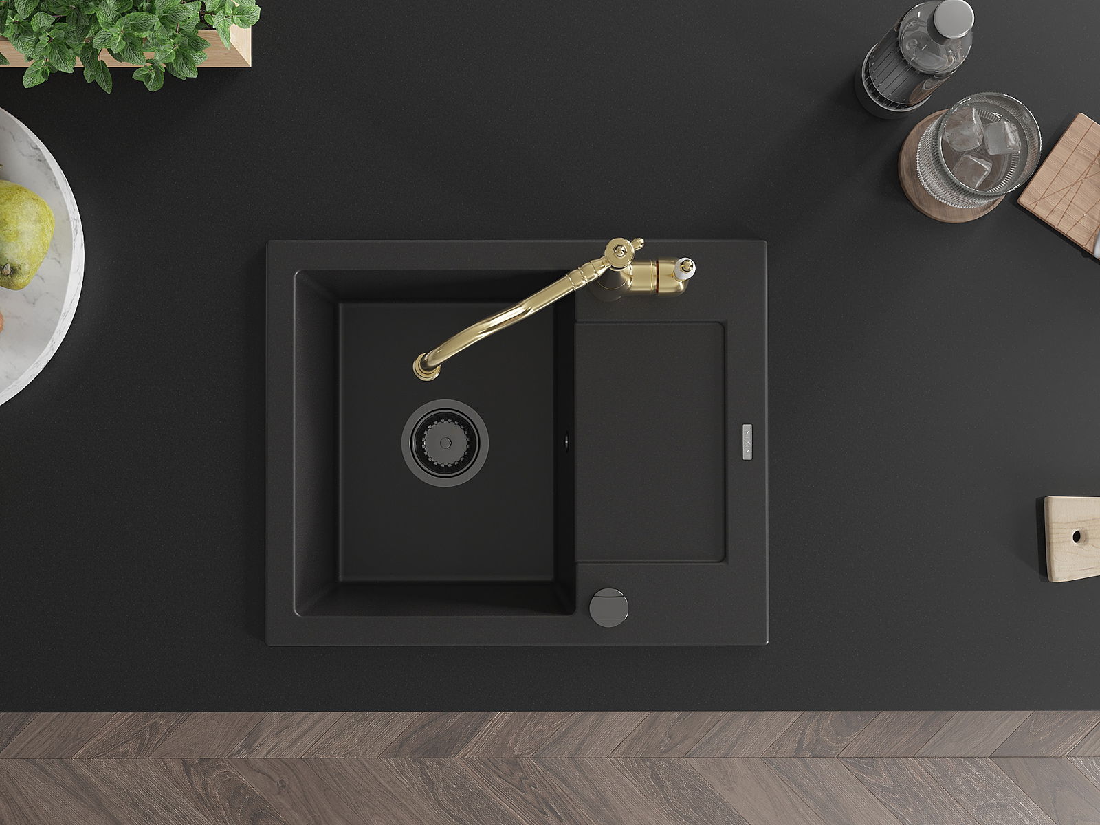 Mexen Enzo žulový drez s odkvapkávačom a kuchynskou batériou Carla, čierny - 6506-77-670700-50-B