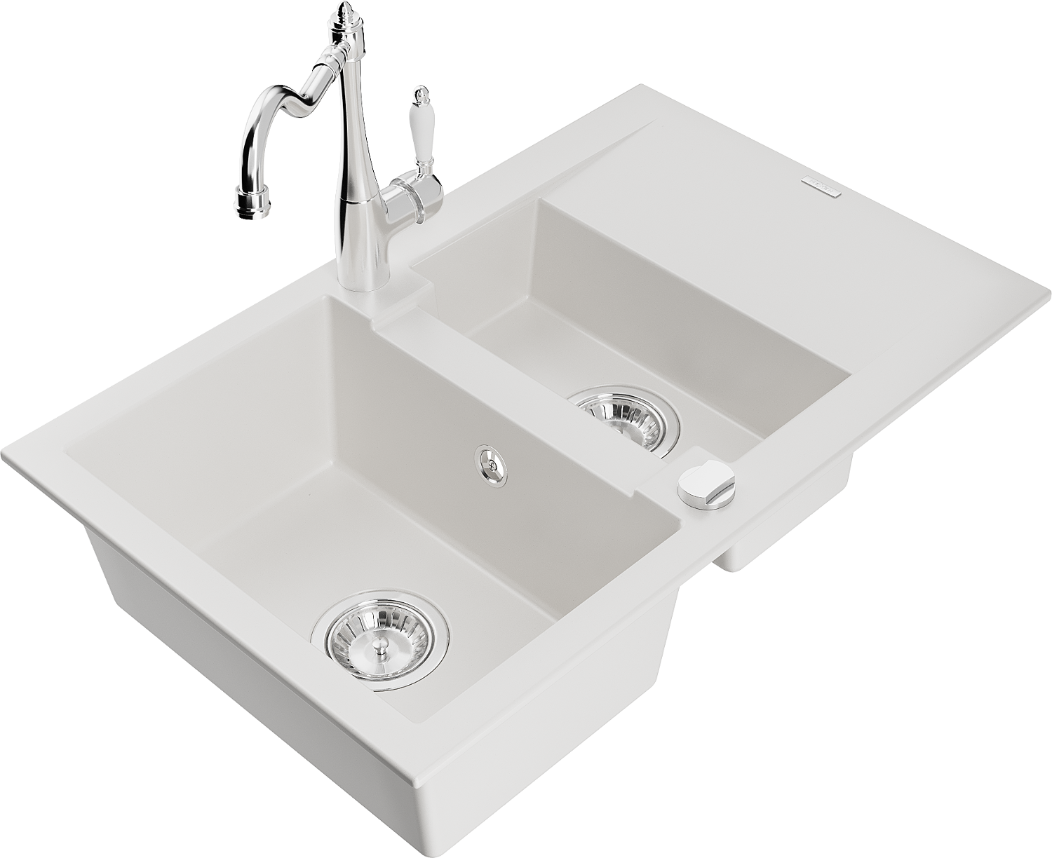 Mexen Gaspar granitový drez 1,5-komorový s odkvapkávačom a kuchynskou batériou Carla, biely - 6507-20-670700-00