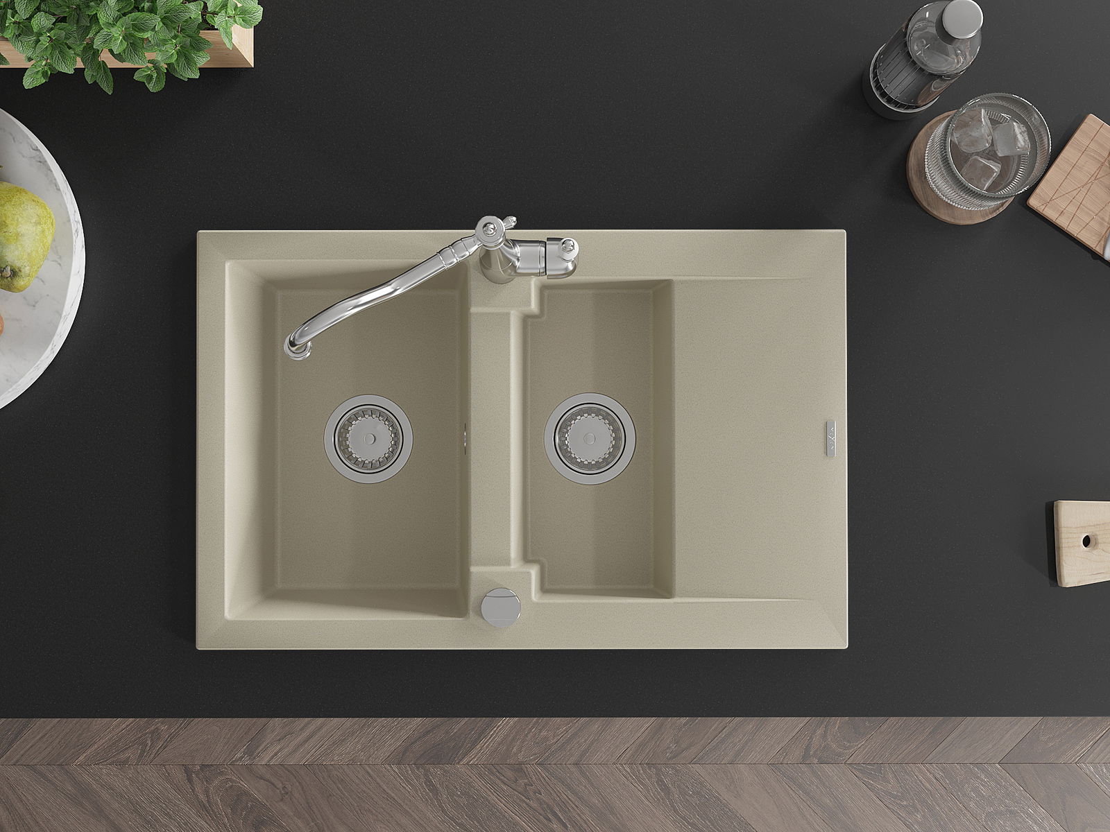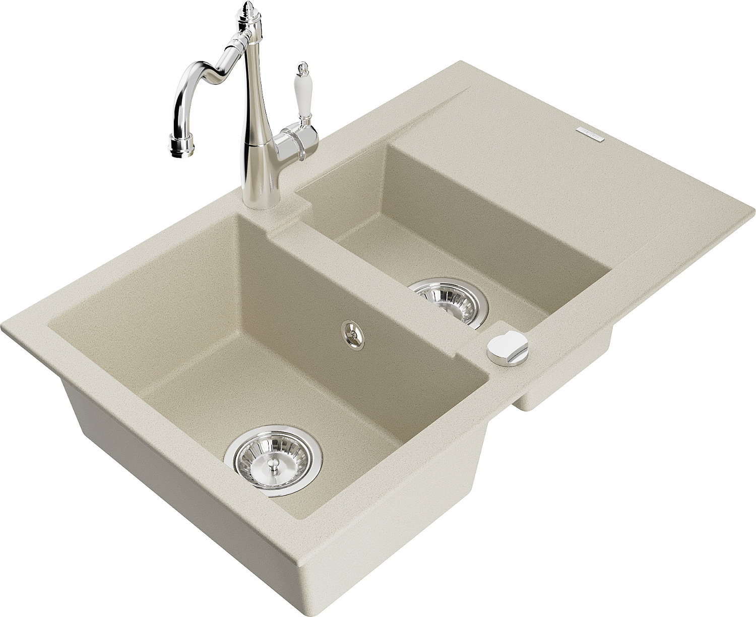 Mexen Gaspar žulový drez 1,5-komorový s odkvapkávačom a kuchynskou batériou Carla, béžový - 6507-69-670700-00