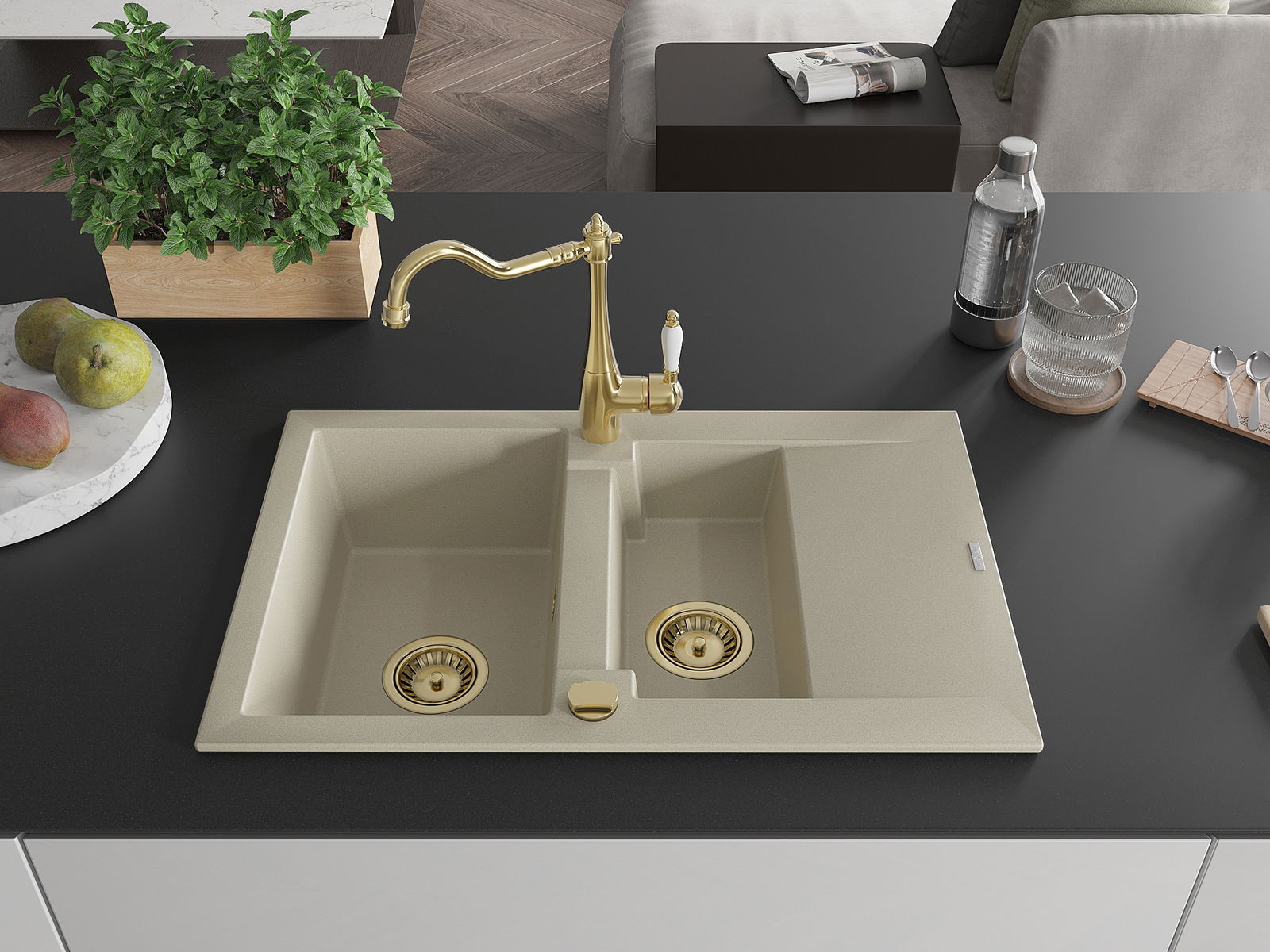 Povrch umývadla je odolný voči škvrnám a sfarbeniu, vďaka čomu sa ľahko čistí a zachováva si svoju farbu po dlhú dobu. Estetický a prakticky dopĺňajúci každú kuchyňu.