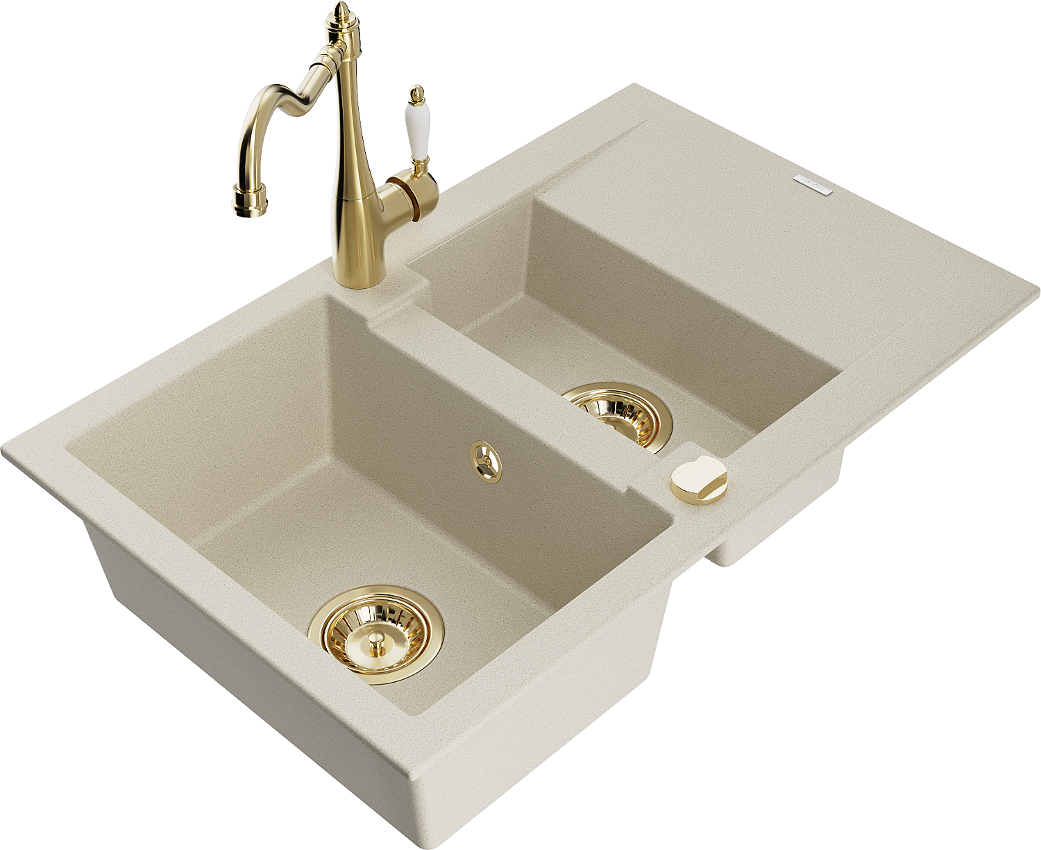 Mexen Gaspar granitový drez 1,5-komorový s odkvapkávačom a kuchynskou batériou Carla, béžový - 6507-69-670700-50