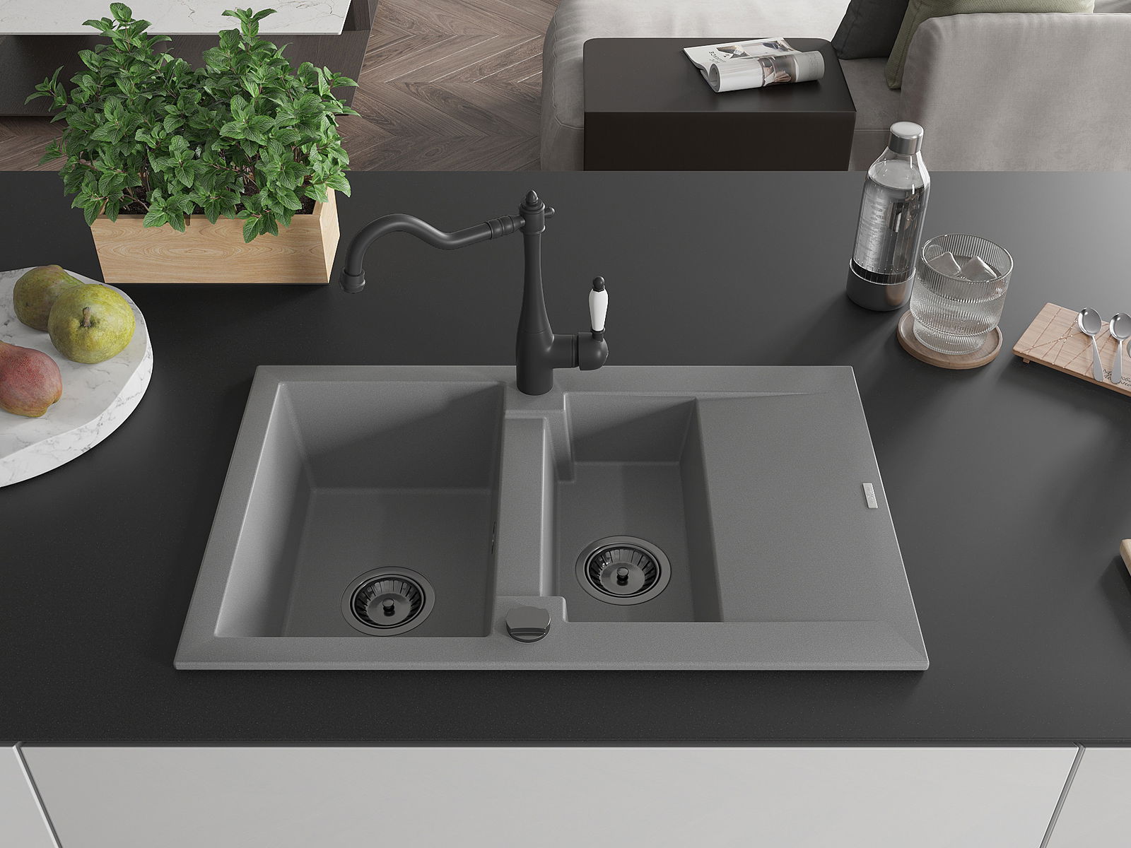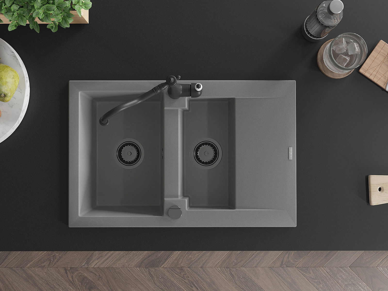 Povrch umývadla je odolný voči škvrnám a sfarbeniu, vďaka čomu sa ľahko čistí a zachováva si svoju farbu po dlhú dobu. Estetický a prakticky dopĺňajúci každú kuchyňu.