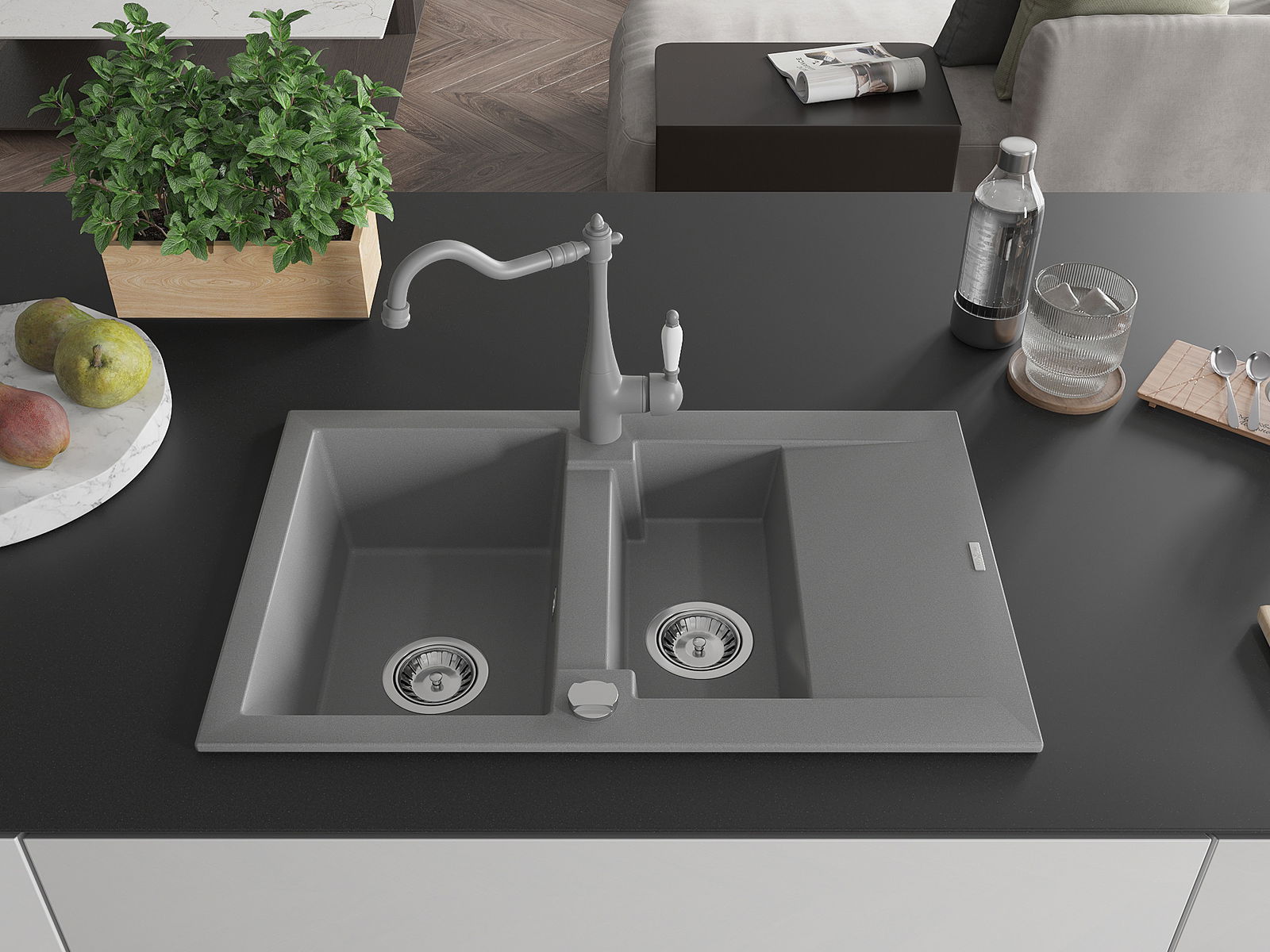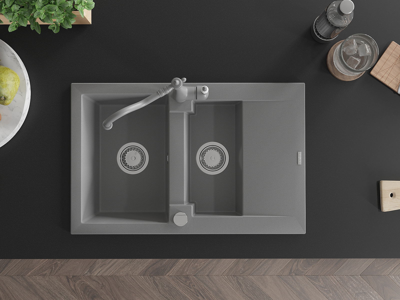 Mexen Gaspar žulový drevozmyvák 1,5-komorový s odkvapkávačom a kuchynskou batériou Carla, šedá - 6507-71-670700-71