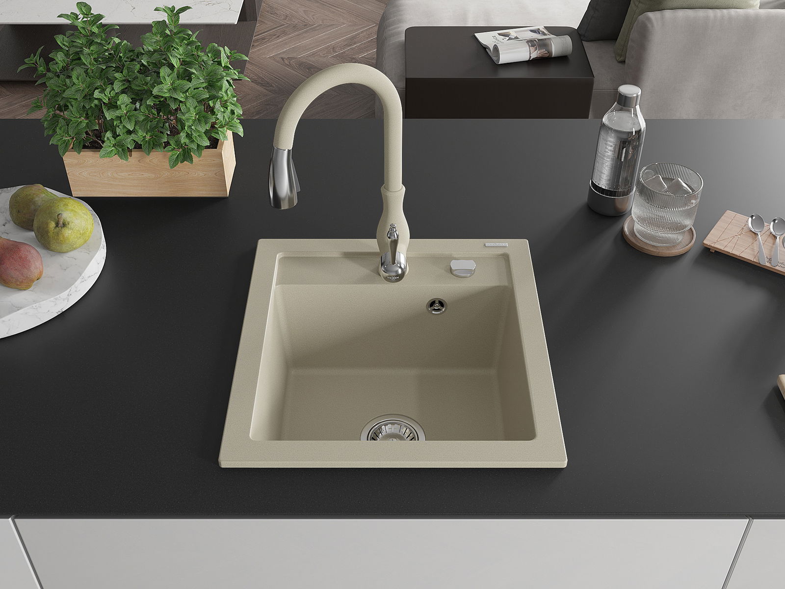 Povrch umývadla je odolný voči škvrnám a sfarbeniu, vďaka čomu sa ľahko čistí a zachováva si svoju farbu po dlhú dobu. Estetický a prakticky dopĺňajúci každú kuchyňu.