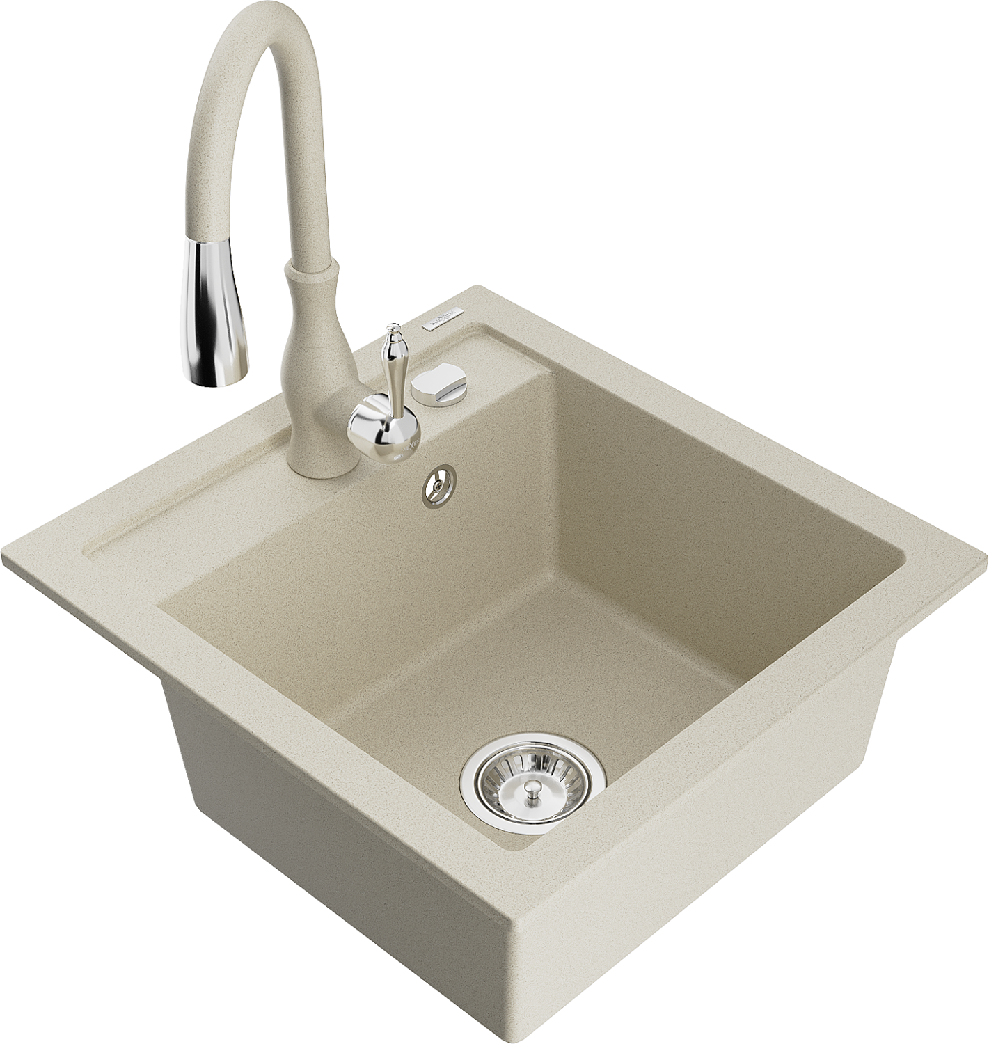 Mexen Vito žulový kuchynský drez s 1-komorou a kuchynskou batériou Savita, béžová - 6503-69-672601-69