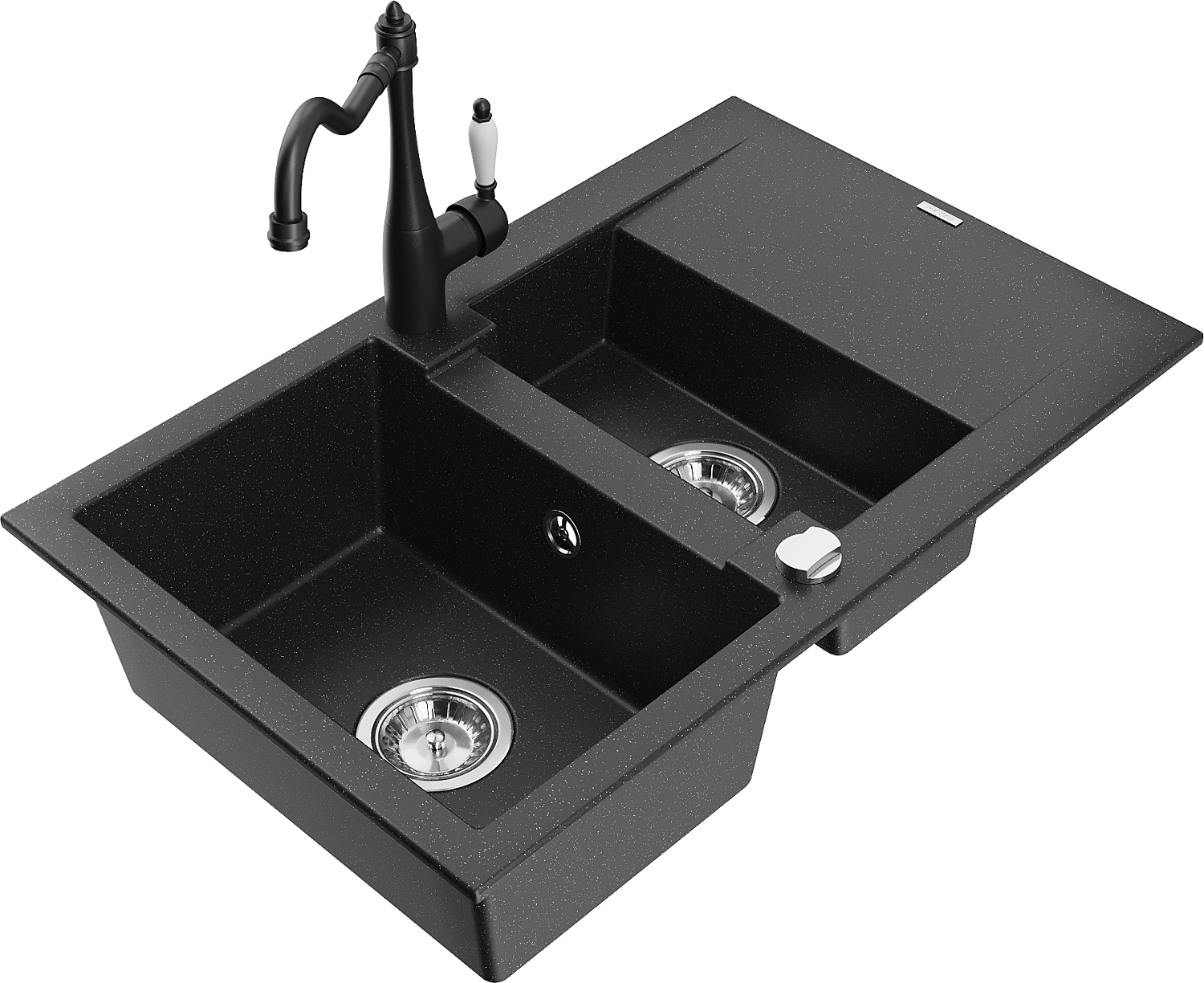 Mexen Gaspar žulový drez s 1,5 komorou s odkvapkávačom a kuchynskou batériou Carla čierny/strieborný metalik - 6507-73-670700-7?
