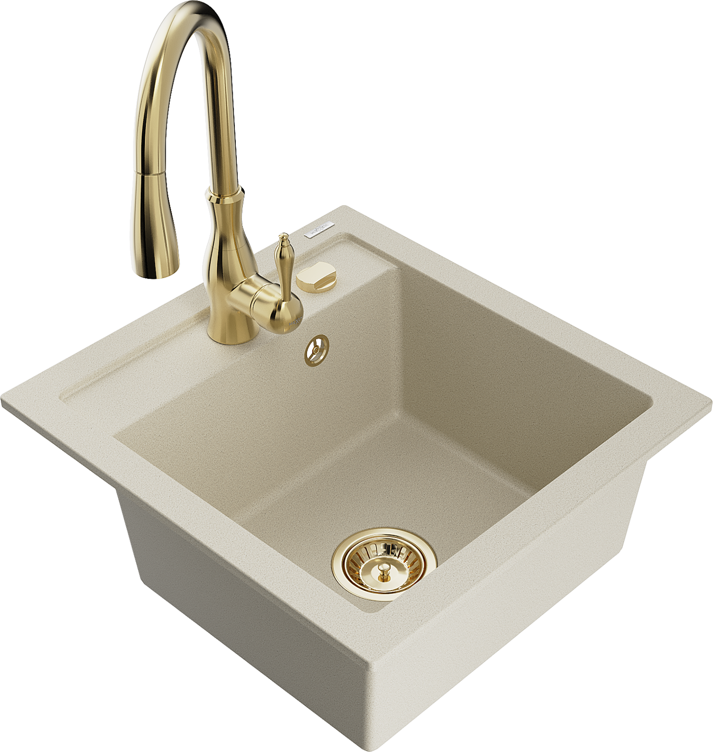 Mexen Vito granitový drez 1-komorový s kuchynskou batériou Savita, béžový - 6503-69-672601-50