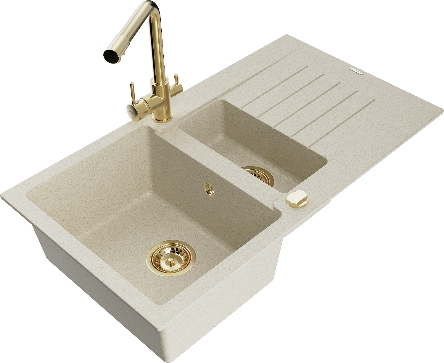 Mexen Matias granitový drez 1,5-komorový s odkvapkávačom a kuchynskou batériou Duero, béžový - 6502-69-671600-50