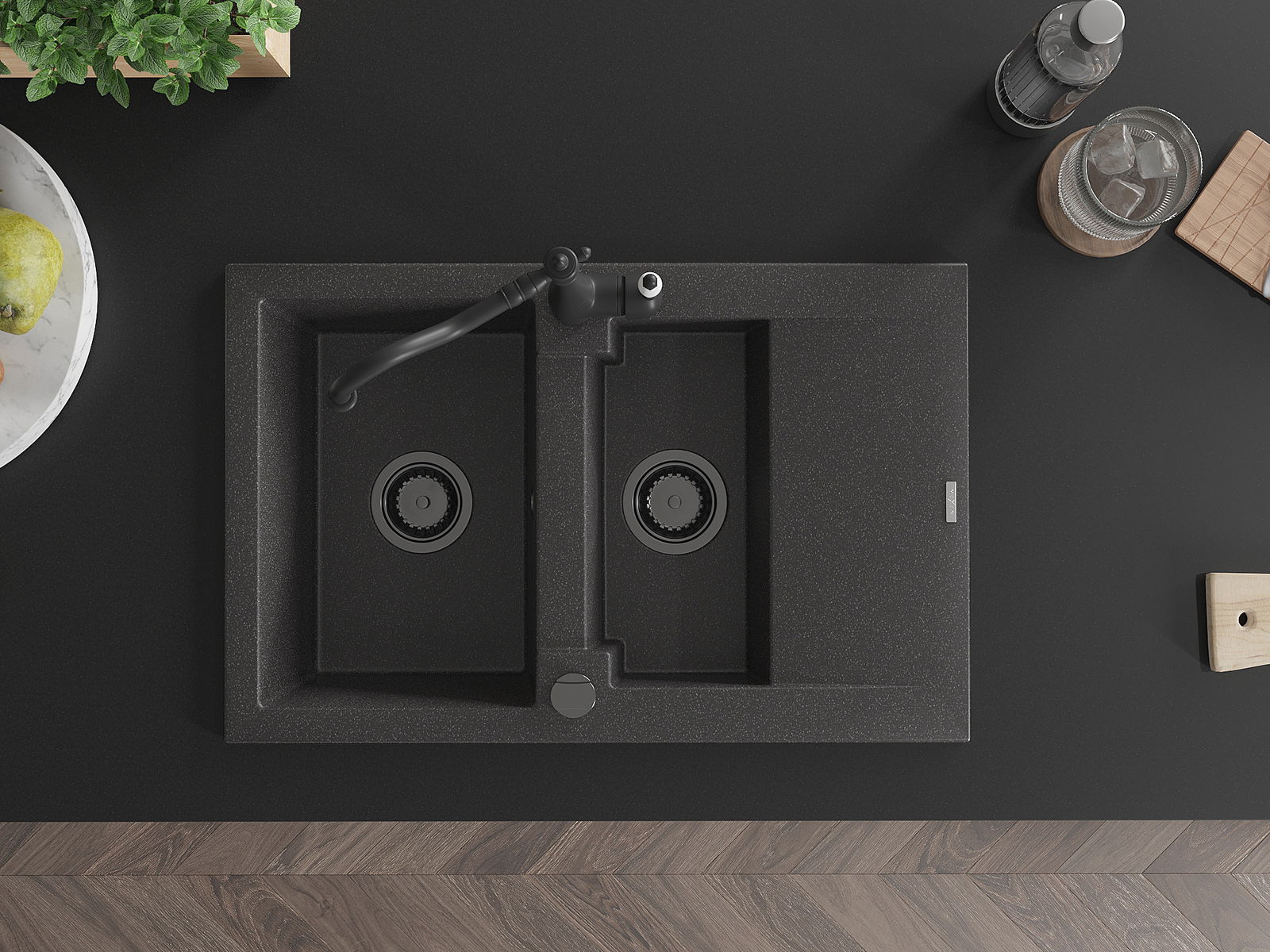 Povrch umývadla je odolný voči škvrnám a sfarbeniu, vďaka čomu sa ľahko čistí a zachováva si svoju farbu po dlhú dobu. Estetický a prakticky dopĺňajúci každú kuchyňu.