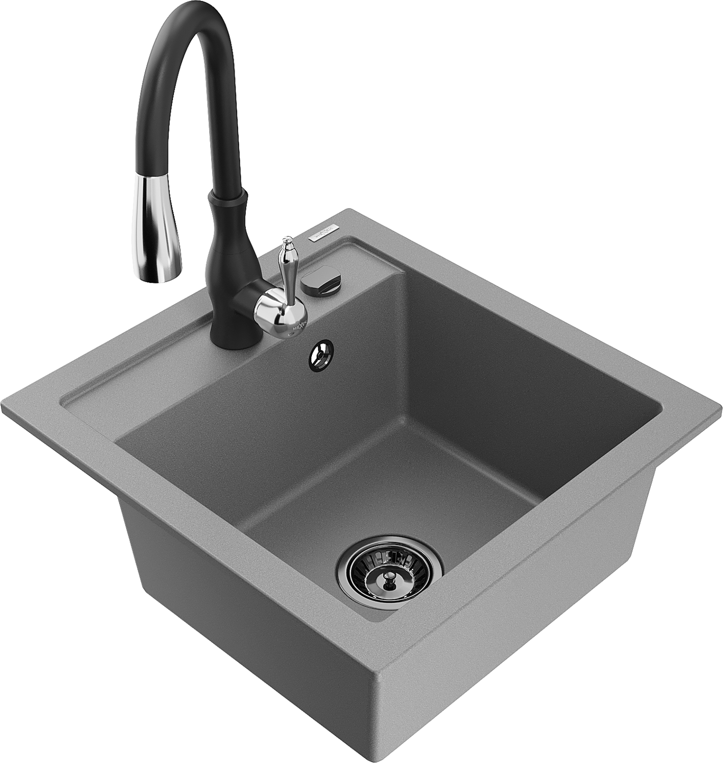 Mexen Vito žulový kuchynský drez s jednou komorou a kuchynskou batériou Savita, šedý - 6503-71-672601-70-B