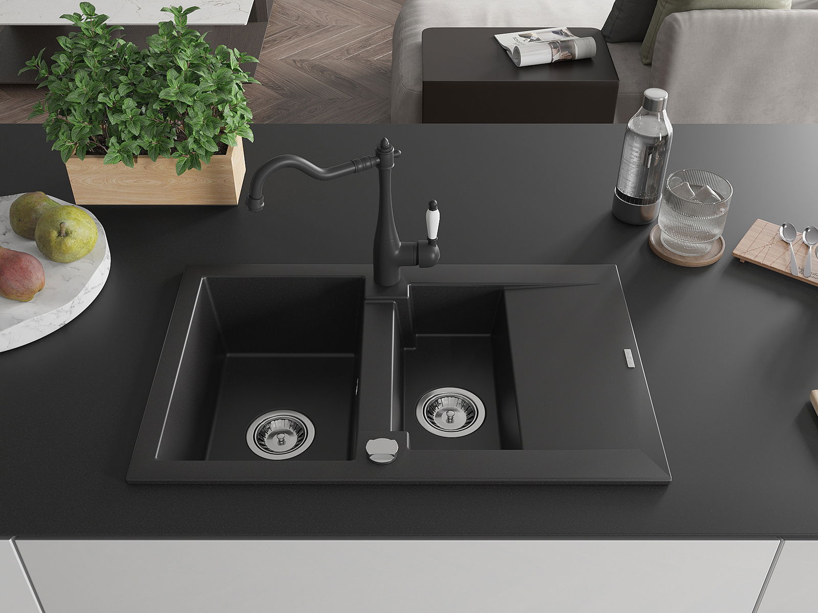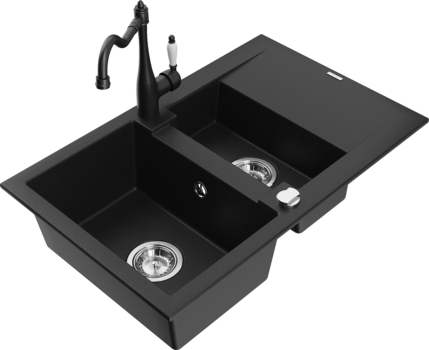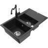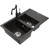 Mexen Gaspar žulový drez 1,5-komorový s odkvapkávačom a kuchynskou batériou Carla, čierny - 6507-77-670700-70