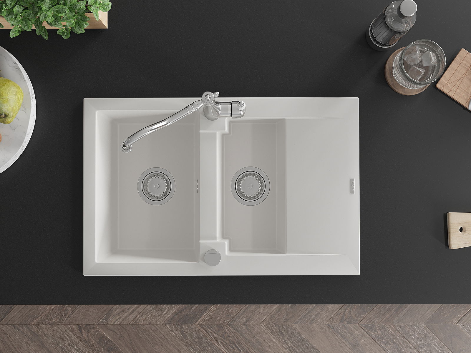 Povrch umývadla je odolný voči škvrnám a sfarbeniu, vďaka čomu sa ľahko čistí a zachováva si svoju farbu po dlhú dobu. Estetický a prakticky dopĺňajúci každú kuchyňu.