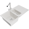 Povrch kuchynského drezu je odolný voči škvrnám a zafarbeniu, vďaka čomu sa ľahko udržiava a zachováva svoju farbu počas dlhého obdobia používania. Estetický a praktický doplnok pre každú kuchyňu.