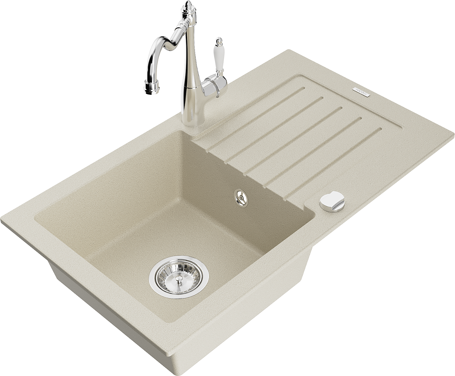 Mexen Pablo žulový kuchynský drez 1-komorový s odkvapkávačom a kuchynskou batériou Carla, béžový - 6510-69-670700-00