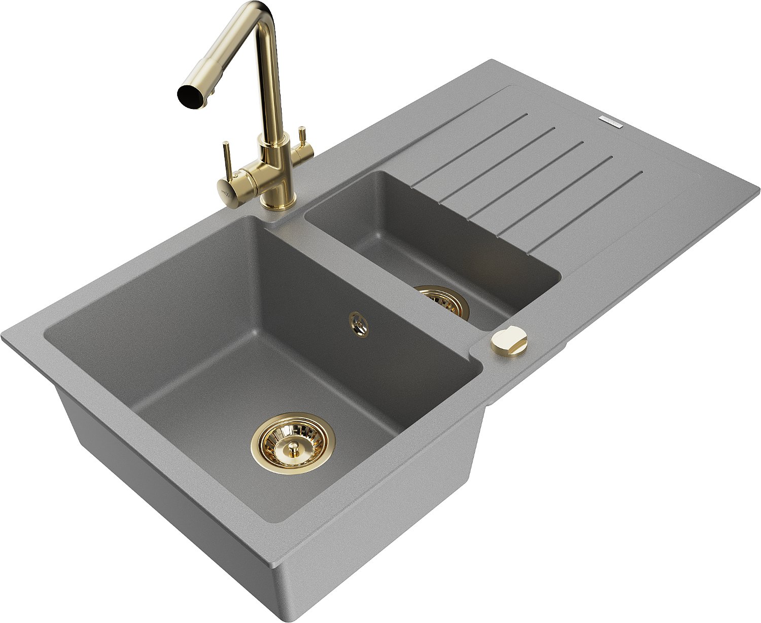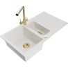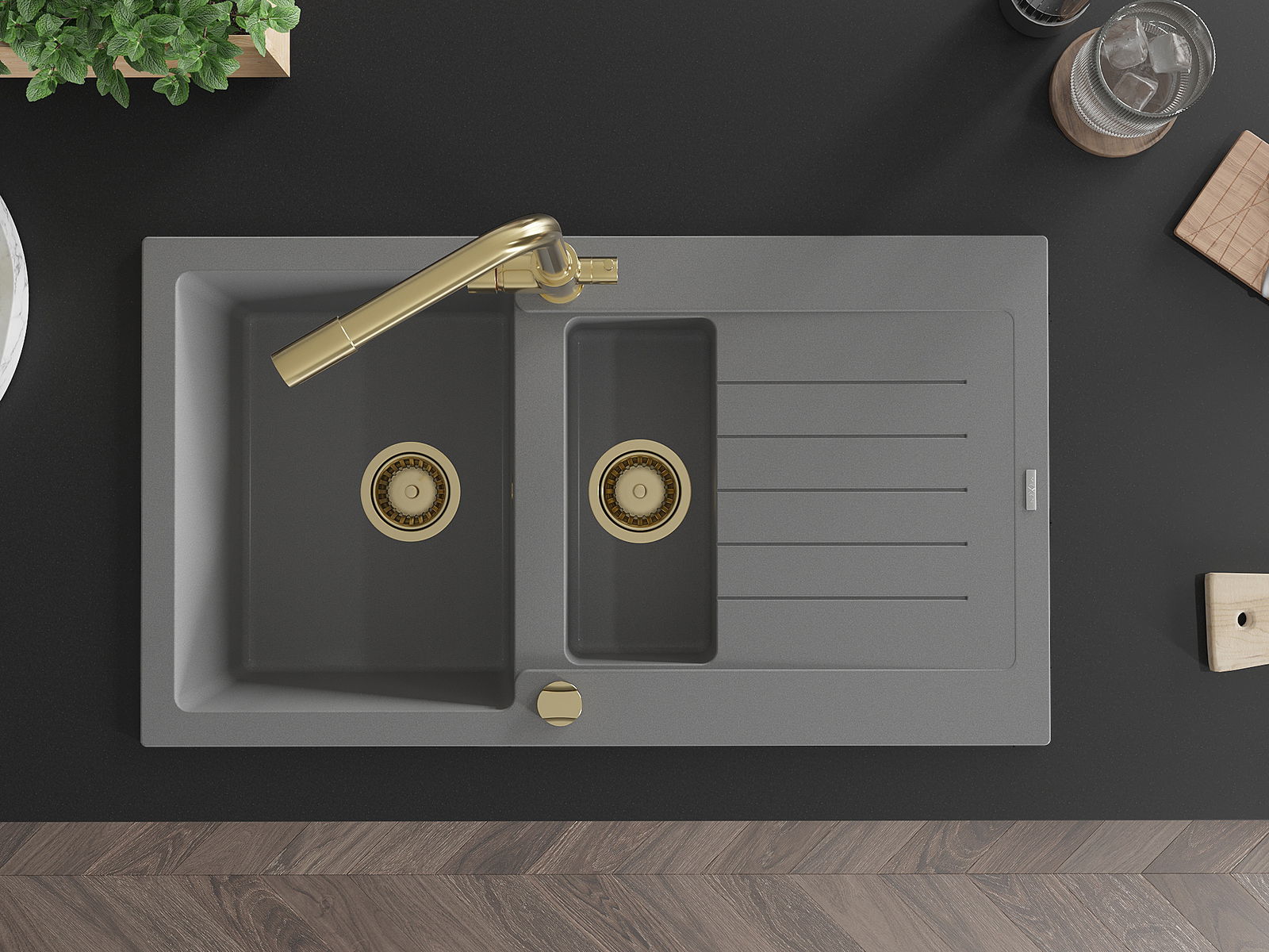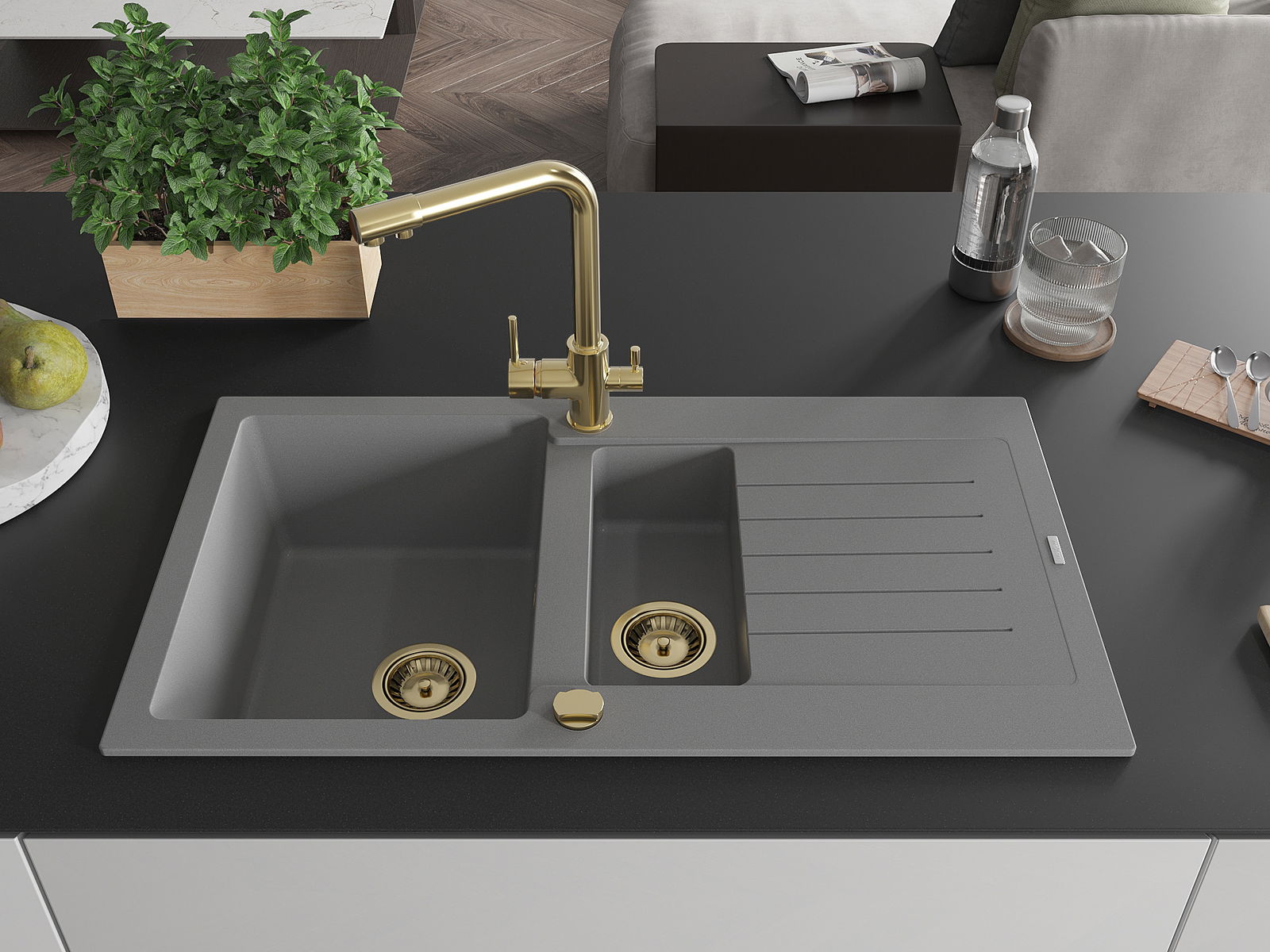 Mexen Matias žulový drez 1,5-komorový s odkvapkávačom a kuchynskou batériou Duero, sivý - 6502-71-671600-50