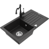 Mexen Pablo granitový drez 1-komorový s odkvapkávačom a kuchynskou batériou Carla, sivý - 6510-71-670700-70