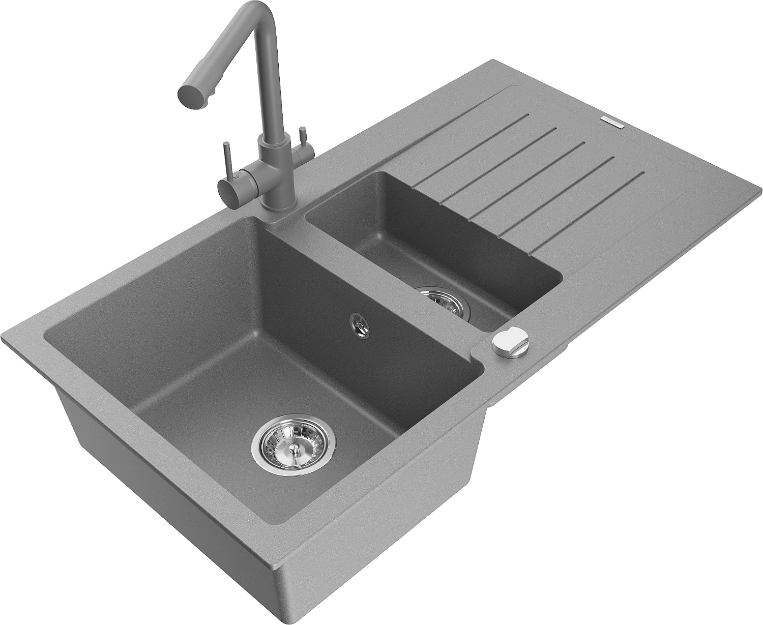 Mexen Matias granitový drez s 1,5 komorou s odkvapkávacou plochou a kuchynskou batériou Duero, sivý - 6502-71-671600-71