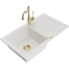 Povrch kuchynského drezu je odolný voči škvrnám a zafarbeniu, vďaka čomu sa ľahko udržiava a zachováva svoju farbu počas dlhého obdobia používania. Estetický a praktický doplnok pre každú kuchyňu.