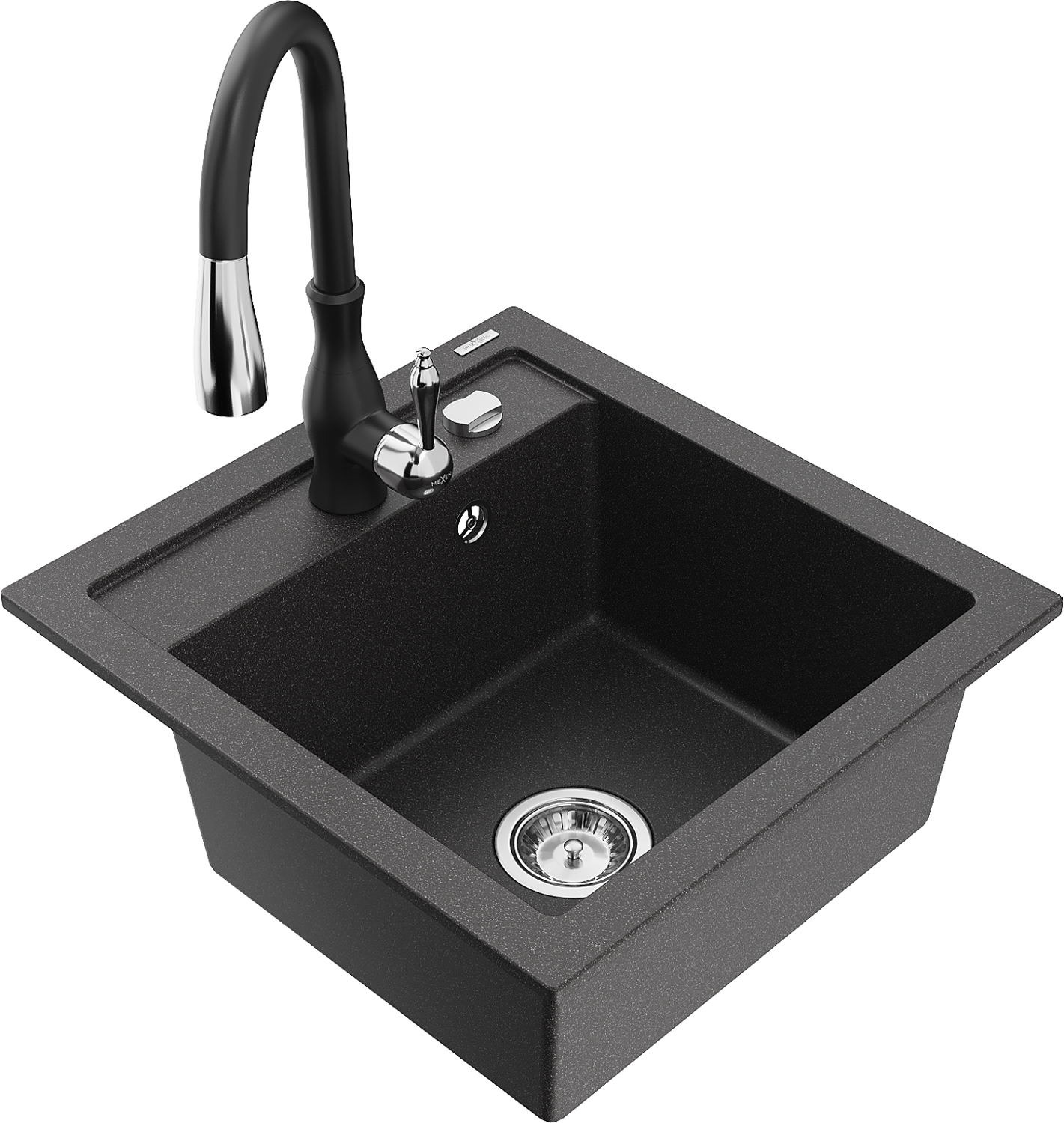Mexen Vito granitový kuchynský drez 1-komorový s kuchynskou batériou Savita, čierny škvrnitý - 6503-76-672601-70