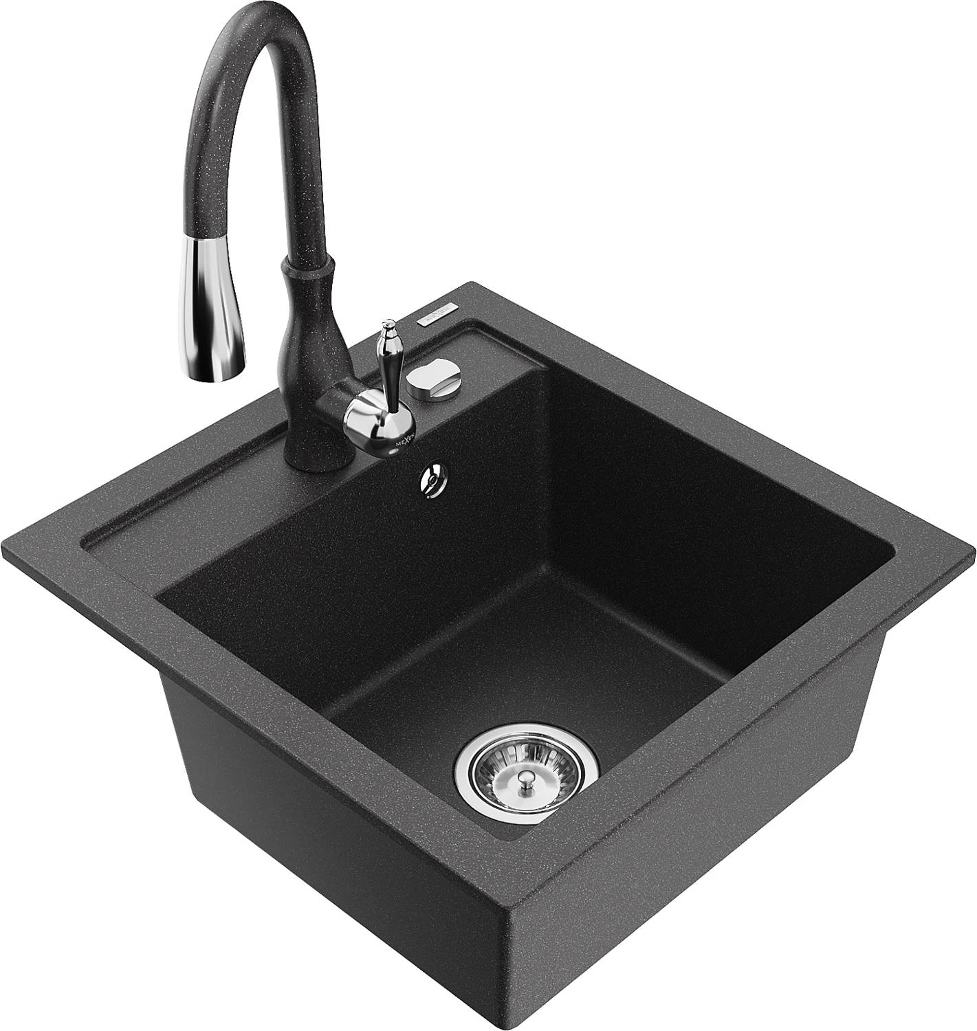 Mexen Vito žulový drez 1-komorový s kuchynskou batériou Savita, čierny špliechaný - 6503-76-672601-76
