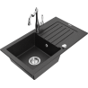 Mexen Pablo žulový kuchynský drez s 1 komorou s odkvapkávačom a kuchynskou batériou Carla, čierny - 6510-77-670700-00
