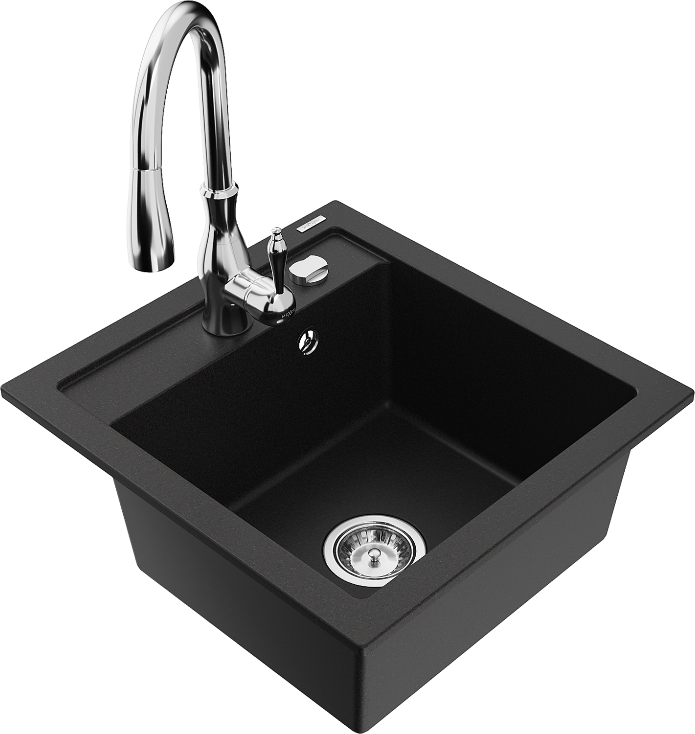 Mexen Vito granitový drez 1-komorový s kuchynskou batériou Savita, čierny - 6503-77-672601-00