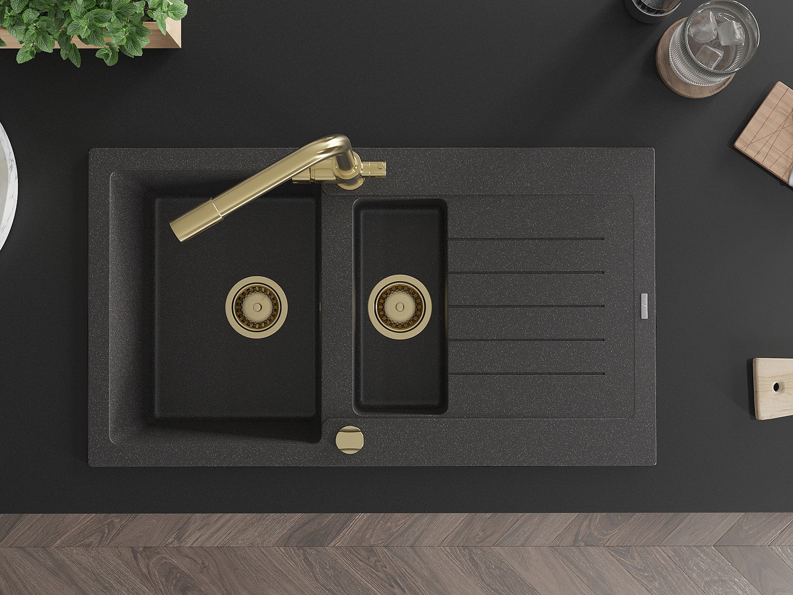 Povrch umývadla je odolný voči škvrnám a sfarbeniu, vďaka čomu sa ľahko čistí a zachováva si svoju farbu po dlhú dobu. Estetický a prakticky dopĺňajúci každú kuchyňu.