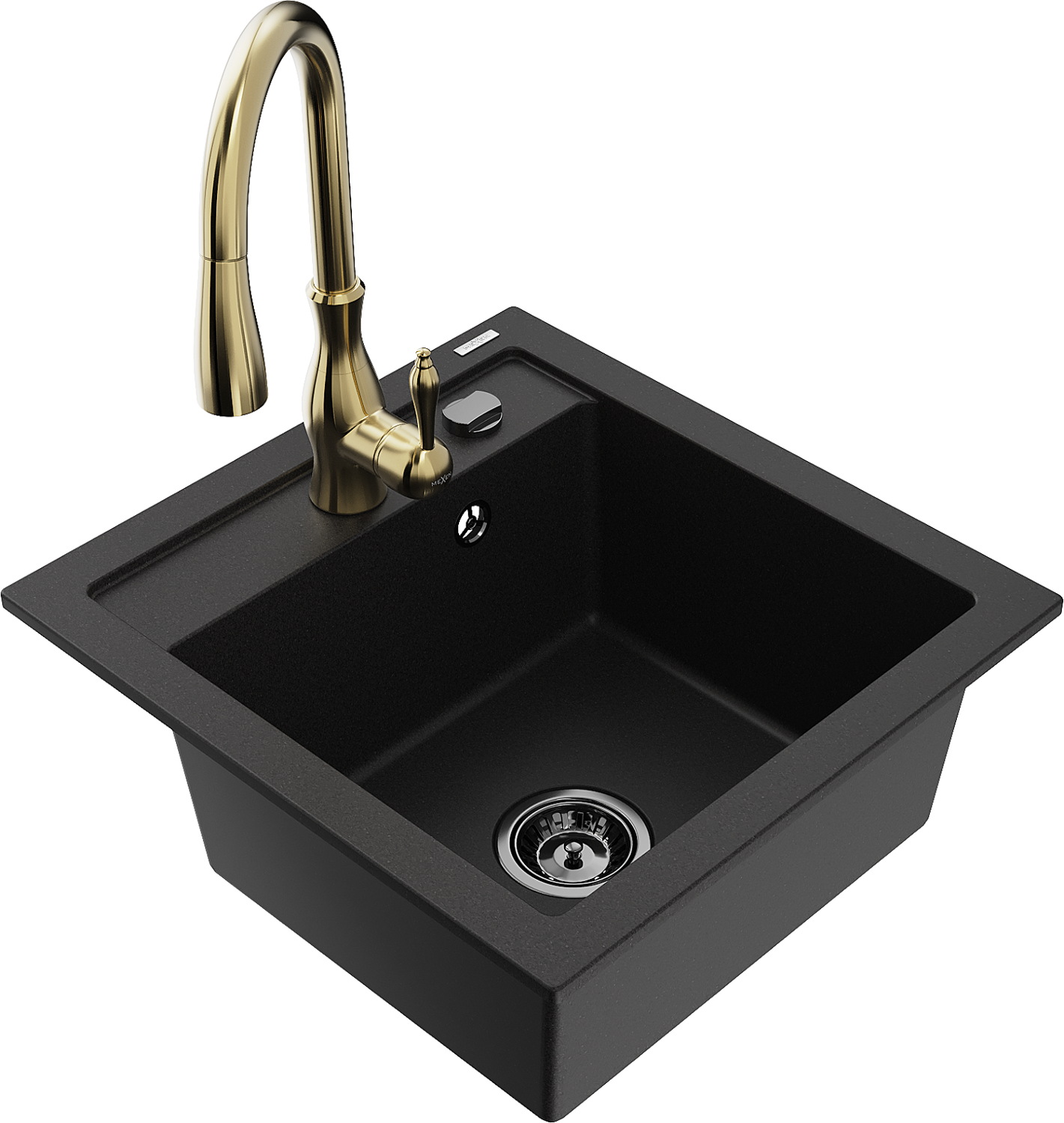 Mexen Vito žulový drez 1-komorový s kuchynskou batériou Savita, čierny - 6503-77-672601-50-B