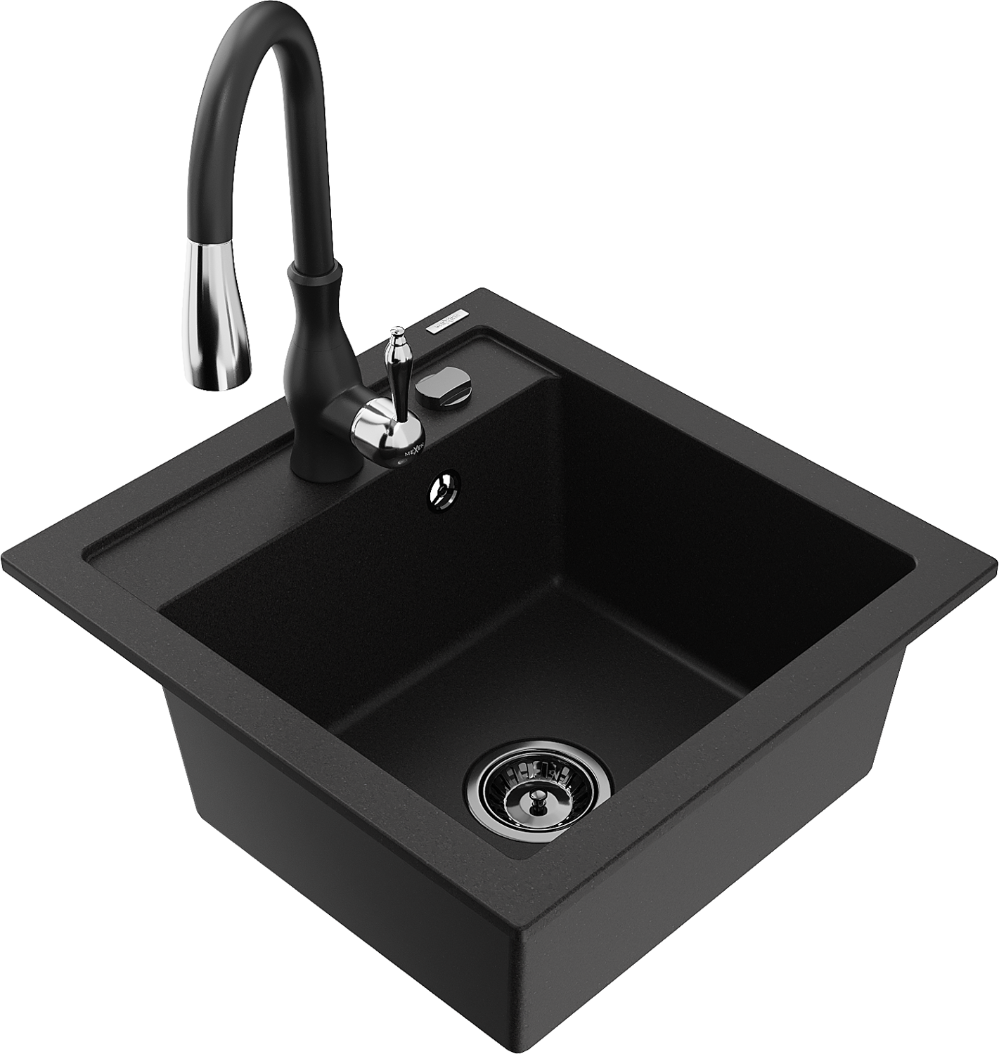 Mexen Vito granitový kuchynský drez s batériou Savita, čierny - 6503-77-672601-70-B