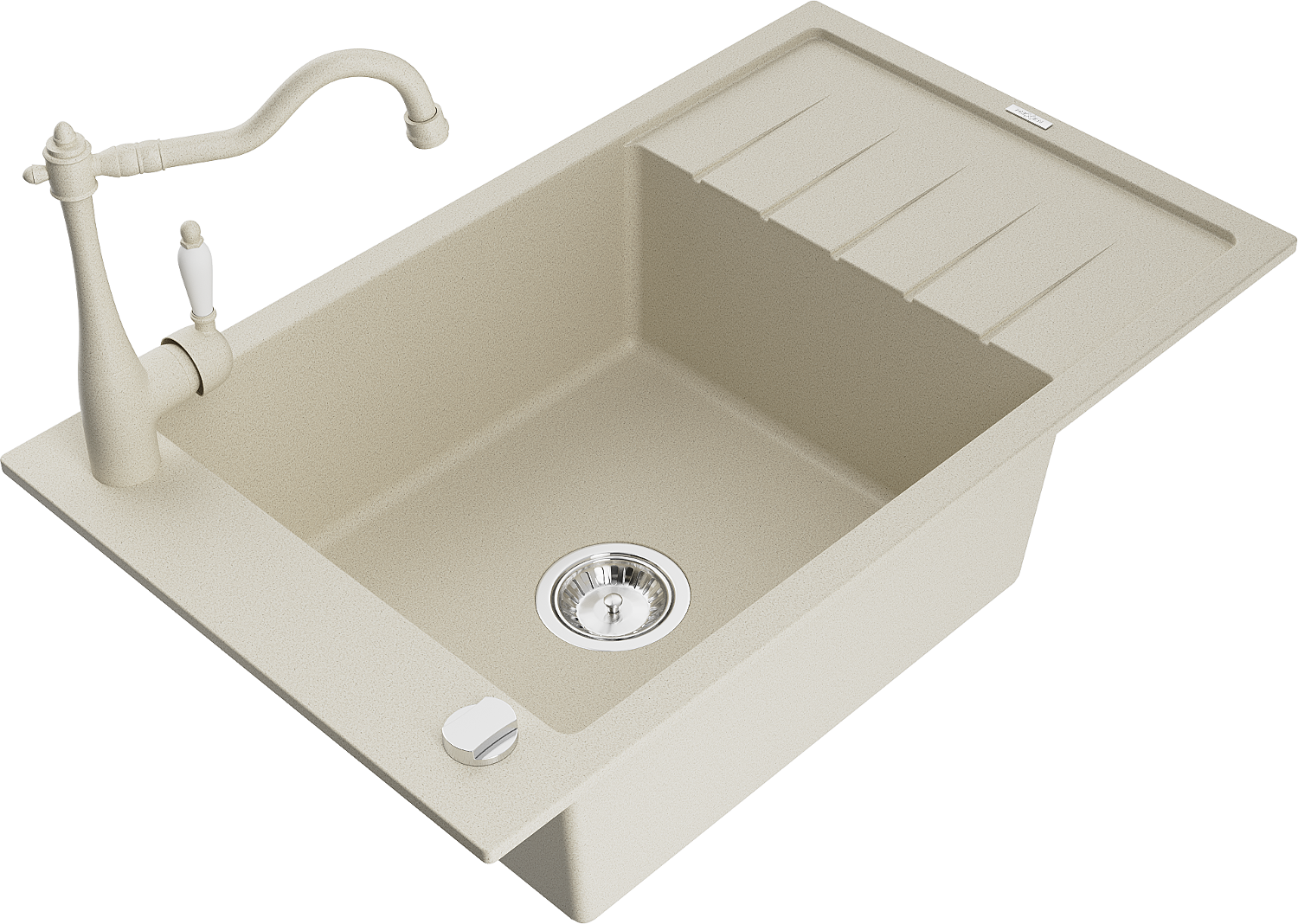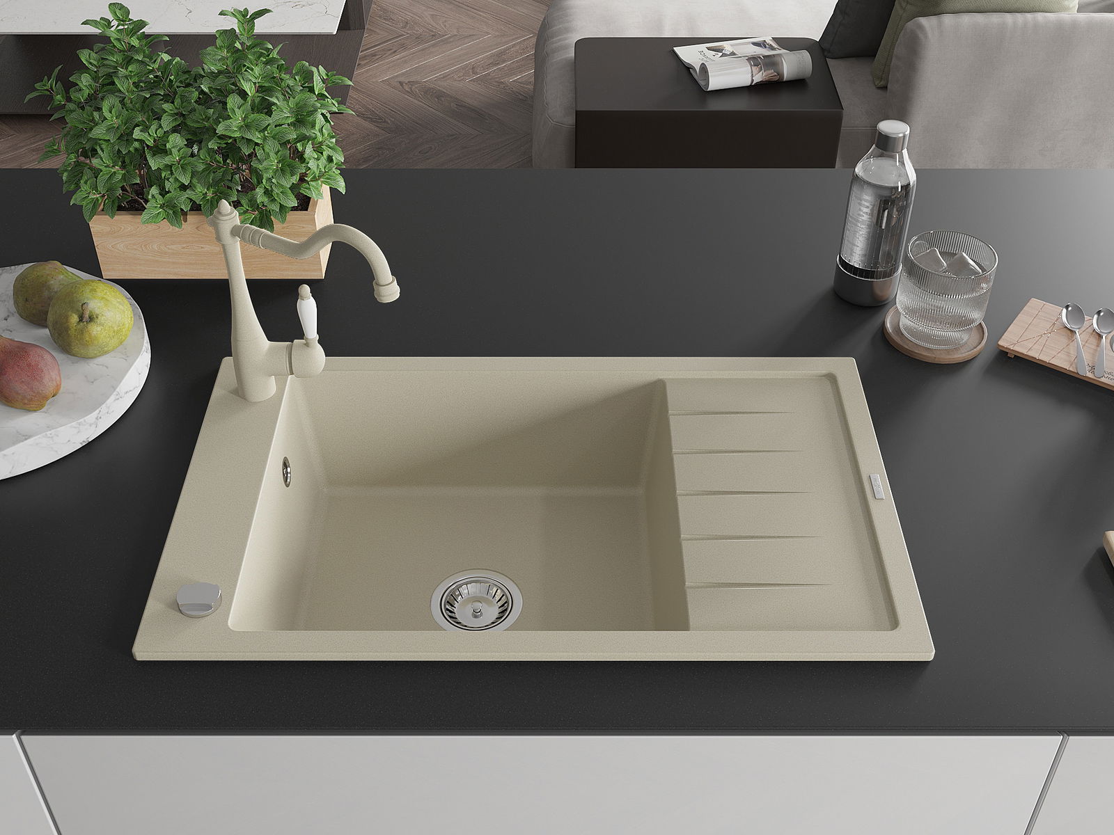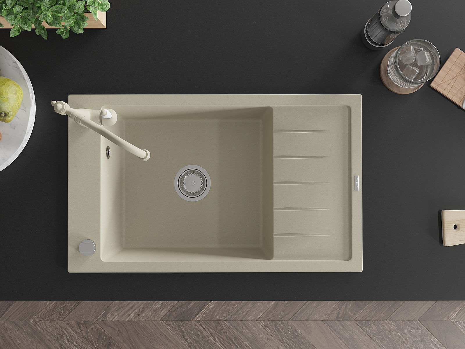 Mexen Elias žulový drez s 1-komorou s odkvapkávačom a kuchynskou batériou Carla, béžový - 6511-69-670700-69