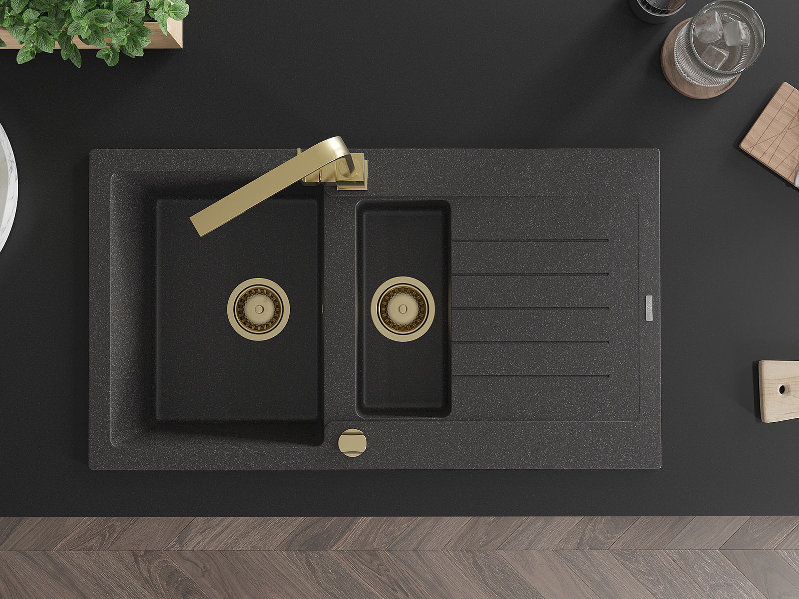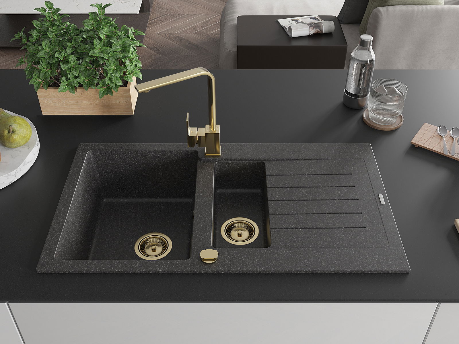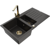 Mexen Matias granitový drez 1,5-komorový s odkvapkávačom a kuchynskou batériou Rita, čierny s bodkami - 6502-76-670300-50