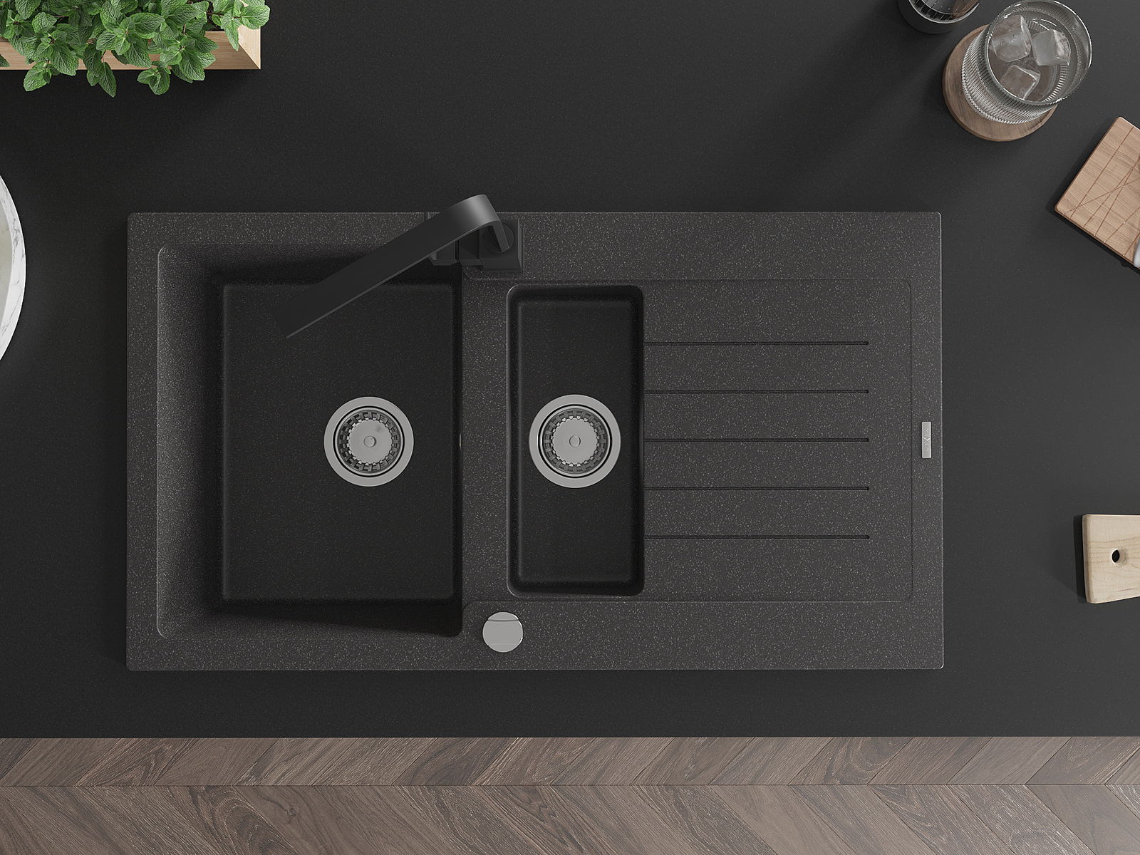 Povrch umývadla je odolný voči škvrnám a sfarbeniu, vďaka čomu sa ľahko čistí a zachováva si svoju farbu po dlhú dobu. Estetický a prakticky dopĺňajúci každú kuchyňu.