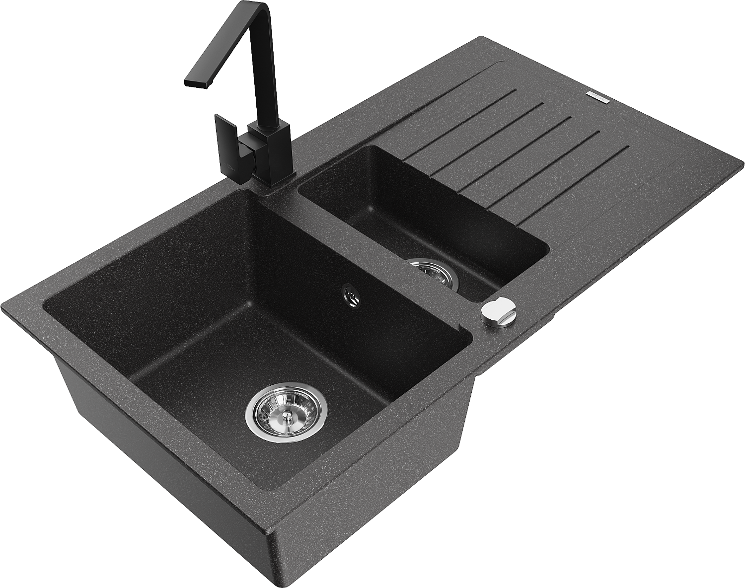 Mexen Matias žulový drez s odkvapkávačom a kuchynskou batériou Rita, čierna bodkovaná - 6502-76-670300-70