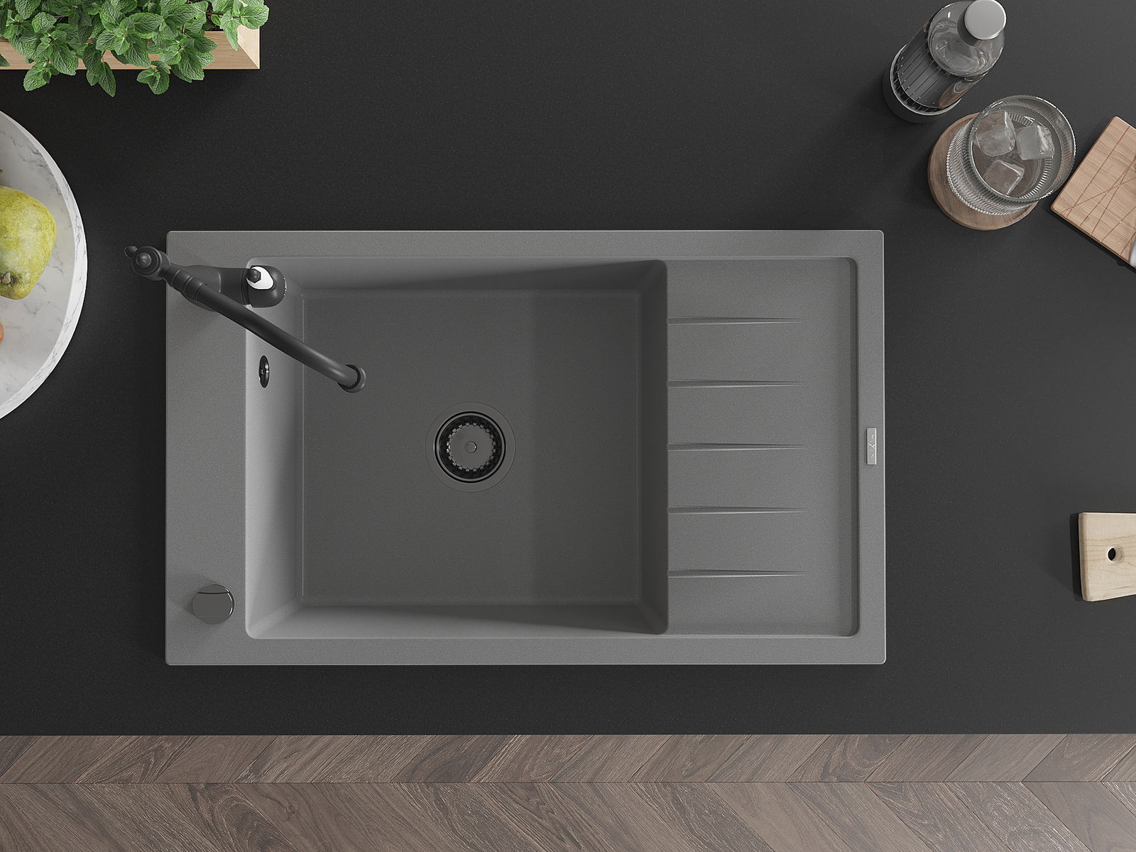 Povrch umývadla je odolný voči škvrnám a sfarbeniu, vďaka čomu sa ľahko čistí a zachováva si svoju farbu po dlhú dobu. Estetický a prakticky dopĺňajúci každú kuchyňu.