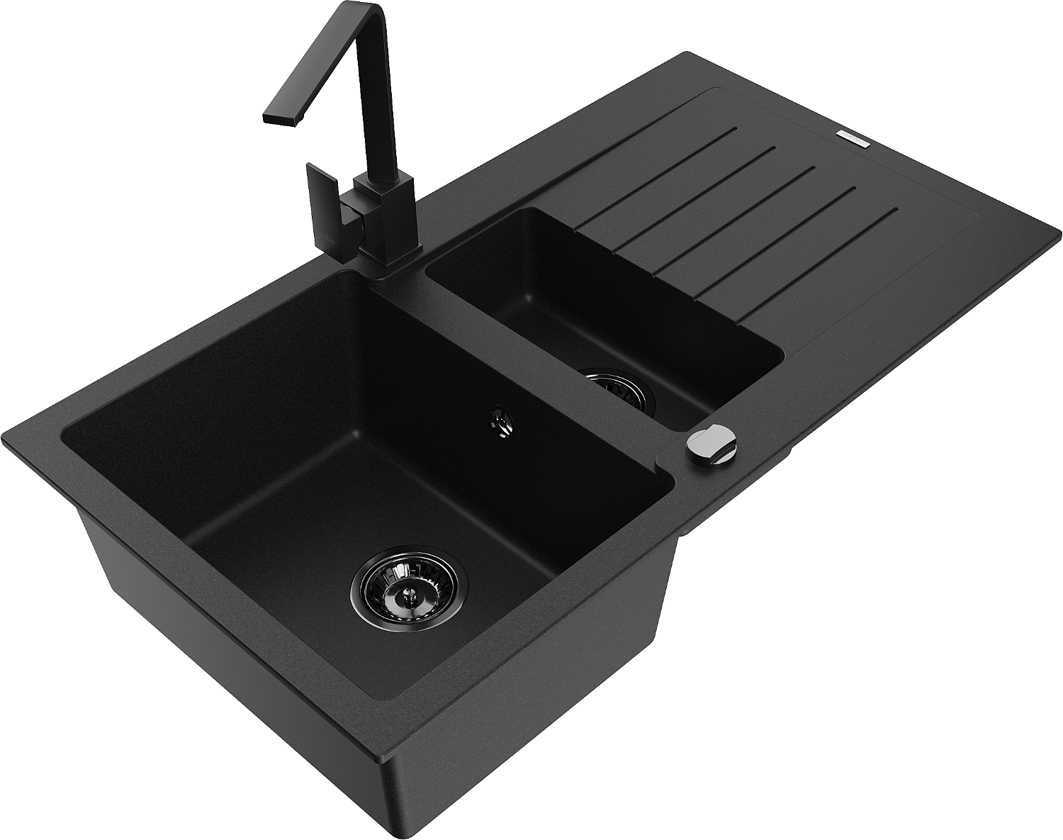 Mexen Matias granitový drez 1,5-komorový s odkvapkávačom a kuchynskou batériou Rita, čierny - 6502-77-670300-70-B