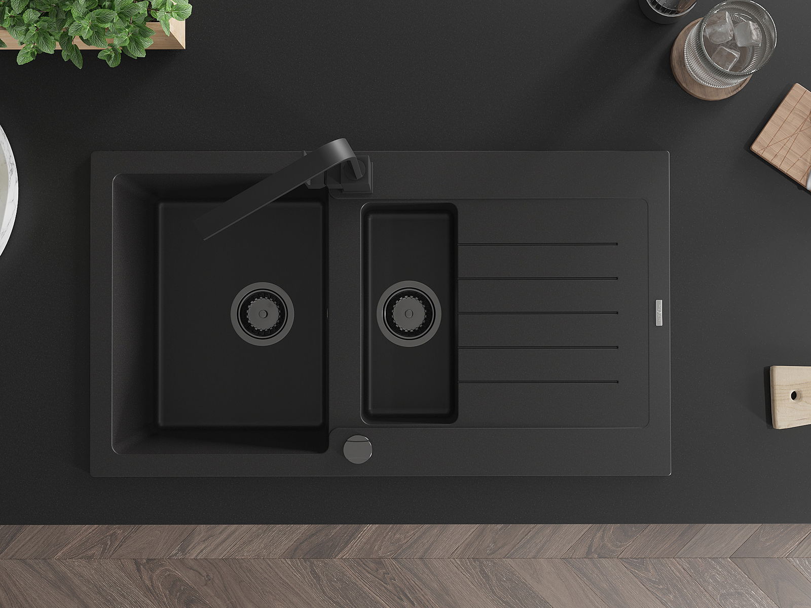 Povrch umývadla je odolný voči škvrnám a sfarbeniu, vďaka čomu sa ľahko čistí a zachováva si svoju farbu po dlhú dobu. Estetický a prakticky dopĺňajúci každú kuchyňu.