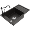 Mexen Elias žulový drez s 1 komorou s odkvapkávačom a kuchynskou batériou Carla, čierny s bodkami - 6511-76-670700-76