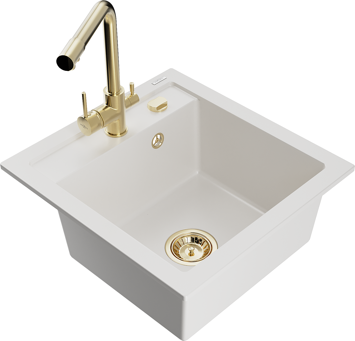 Mexen Vito žulový kuchynský drez 1-komorový s kuchynskou batériou Duero, biely - 6503-20-671600-50