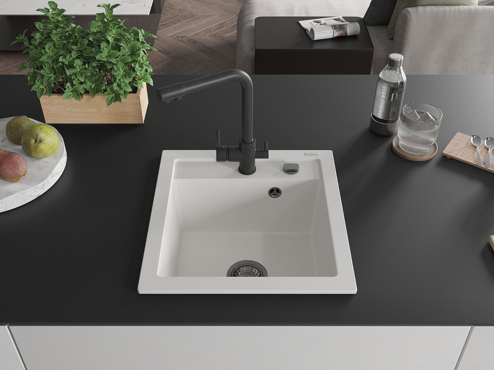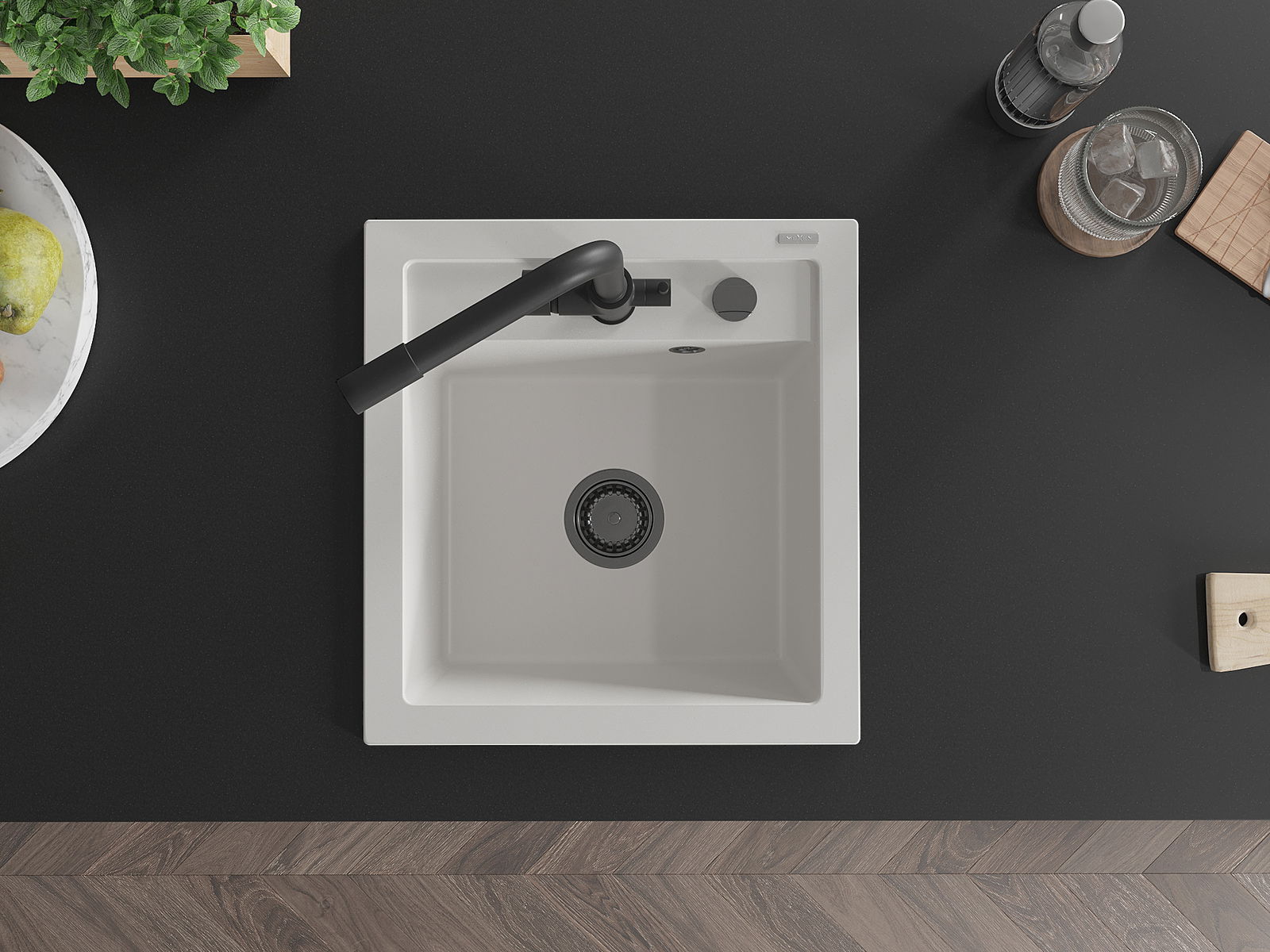 Povrch umývadla je odolný voči škvrnám a sfarbeniu, vďaka čomu sa ľahko čistí a zachováva si svoju farbu po dlhú dobu. Estetický a prakticky dopĺňajúci každú kuchyňu.