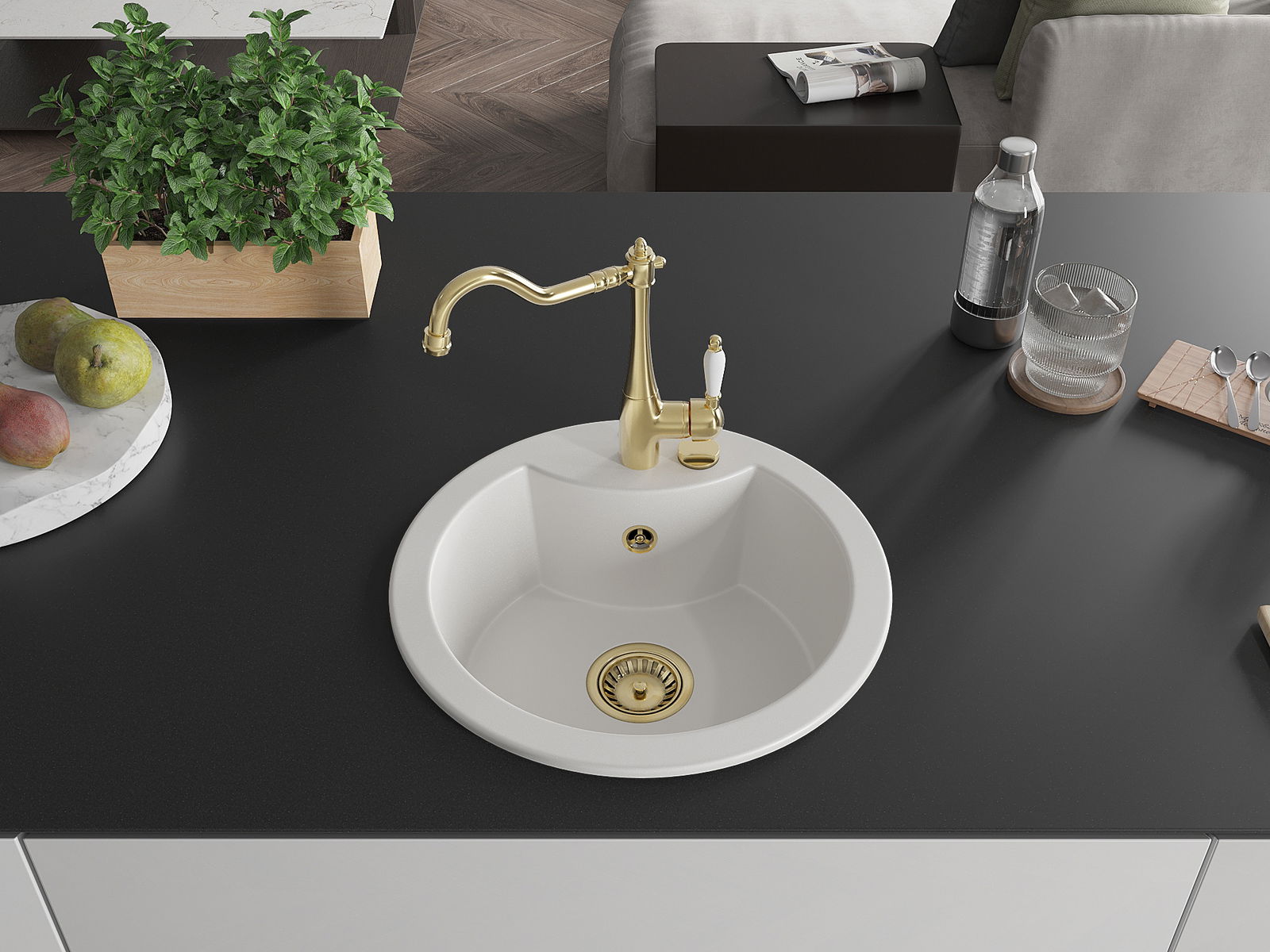 Povrch umývadla je odolný voči škvrnám a sfarbeniu, vďaka čomu sa ľahko čistí a zachováva si svoju farbu po dlhú dobu. Estetický a prakticky dopĺňajúci každú kuchyňu.