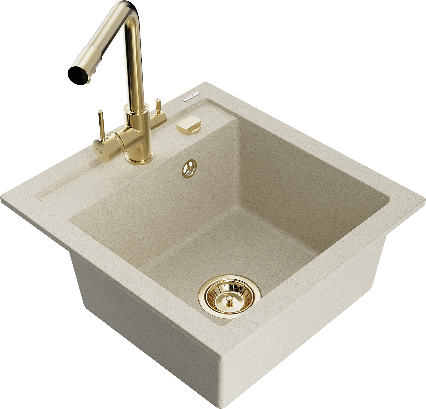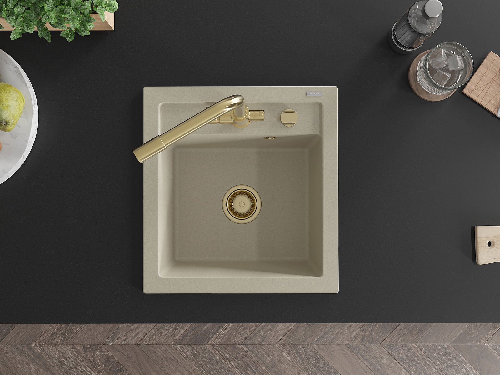 Mexen Vito granitový kuchynský drez s 1 komorou a kuchynskou batériou Duero, béžový - 6503-69-671600-50