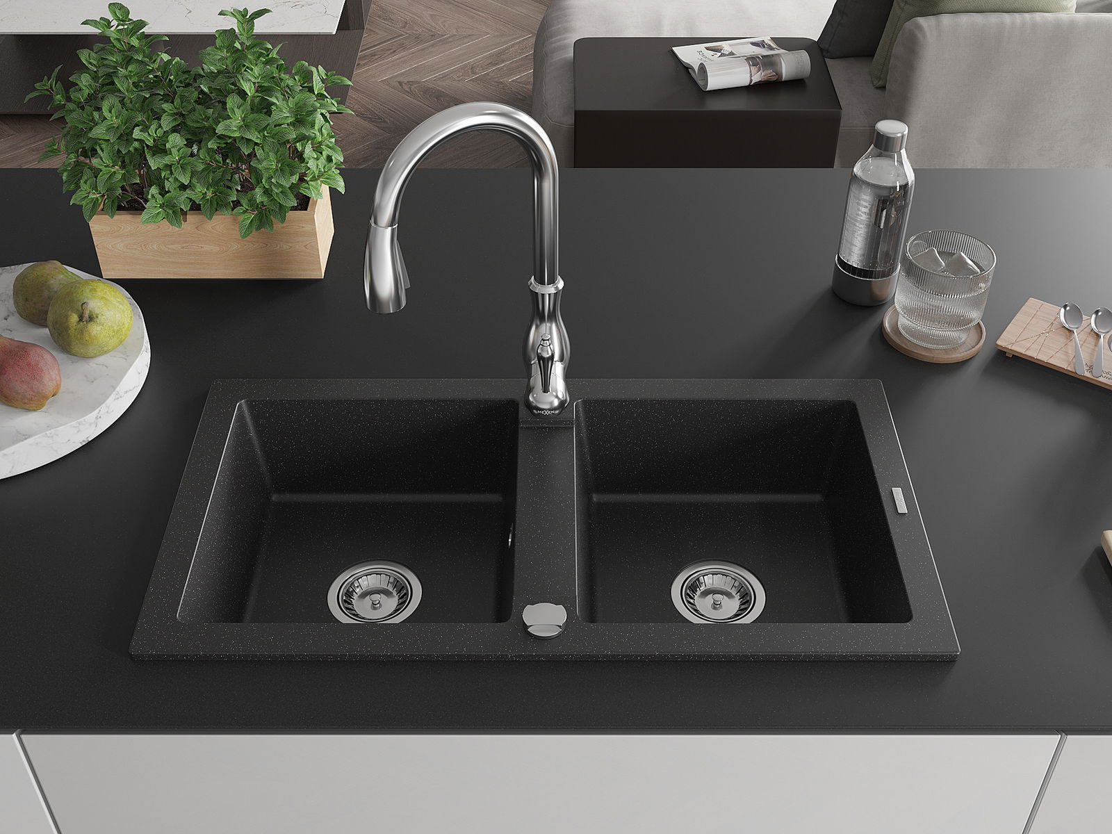 Povrch umývadla je odolný voči škvrnám a sfarbeniu, vďaka čomu sa ľahko čistí a zachováva si svoju farbu po dlhú dobu. Estetický a prakticky dopĺňajúci každú kuchyňu.