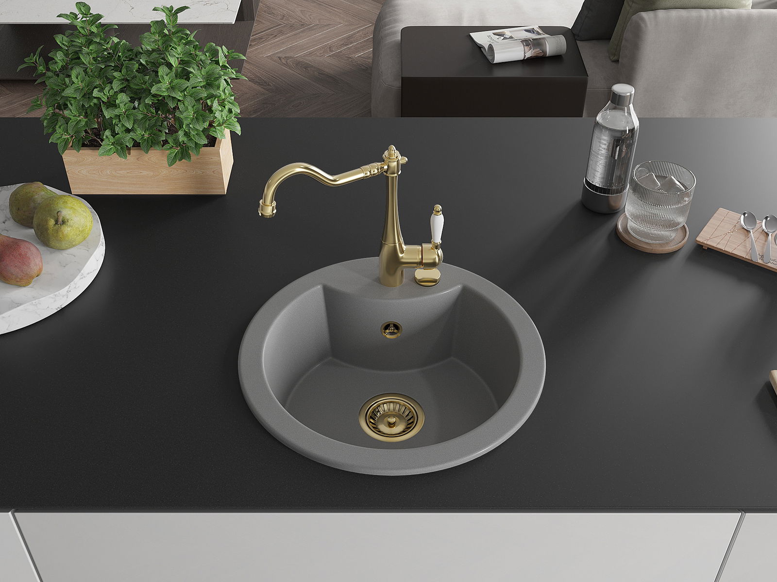 Povrch umývadla je odolný voči škvrnám a sfarbeniu, vďaka čomu sa ľahko čistí a zachováva si svoju farbu po dlhú dobu. Estetický a prakticky dopĺňajúci každú kuchyňu.