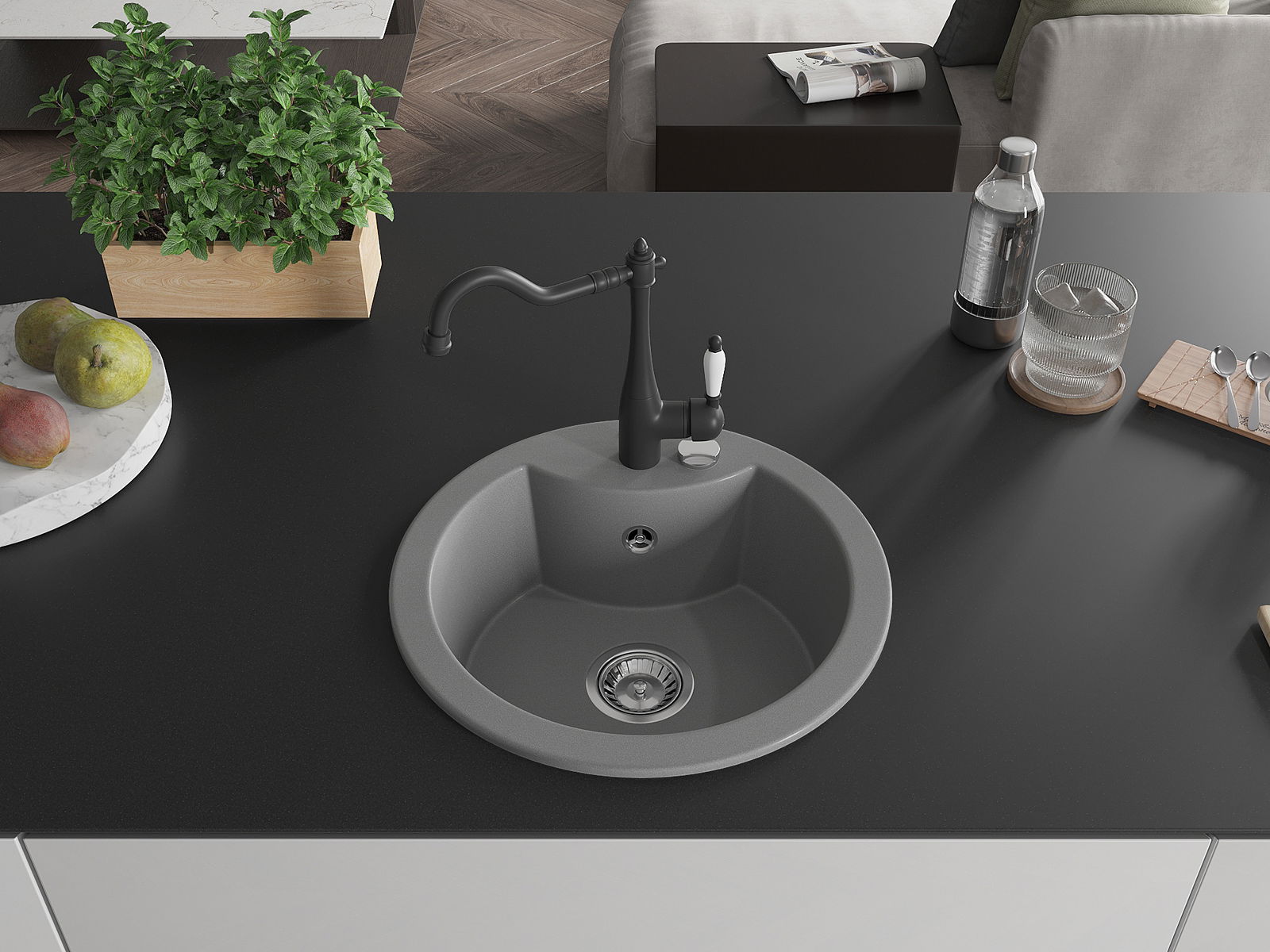 Povrch umývadla je odolný voči škvrnám a sfarbeniu, vďaka čomu sa ľahko čistí a zachováva si svoju farbu po dlhú dobu. Estetický a prakticky dopĺňajúci každú kuchyňu.
