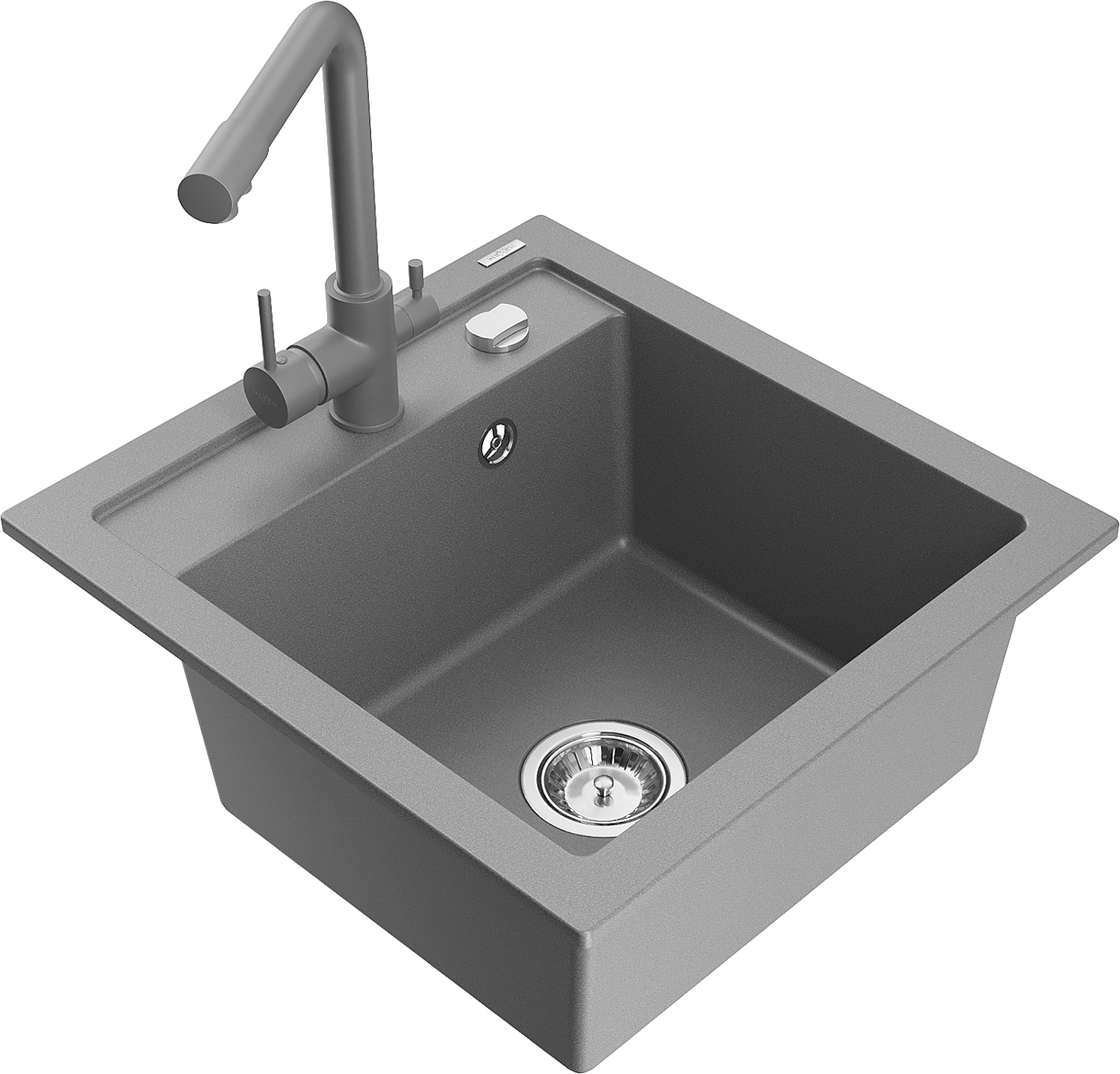 Mexen Vito granitový drez s 1 komorou s kuchynskou batériou Duero, sivý - 6503-71-671600-71