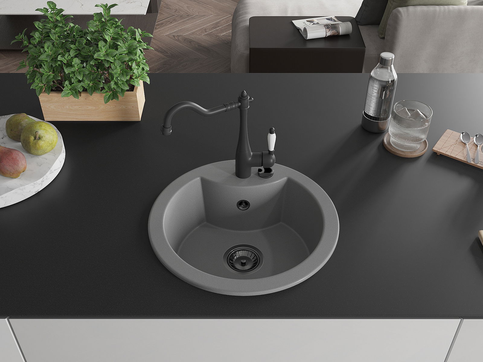 Povrch umývadla je odolný voči škvrnám a sfarbeniu, vďaka čomu sa ľahko čistí a zachováva si svoju farbu po dlhú dobu. Estetický a prakticky dopĺňajúci každú kuchyňu.