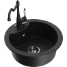 Mexen Diego granitový drez 1-komorový s kuchynskou batériou Carla, čierny/strieborný metalík - 6512-73-670700-70-B